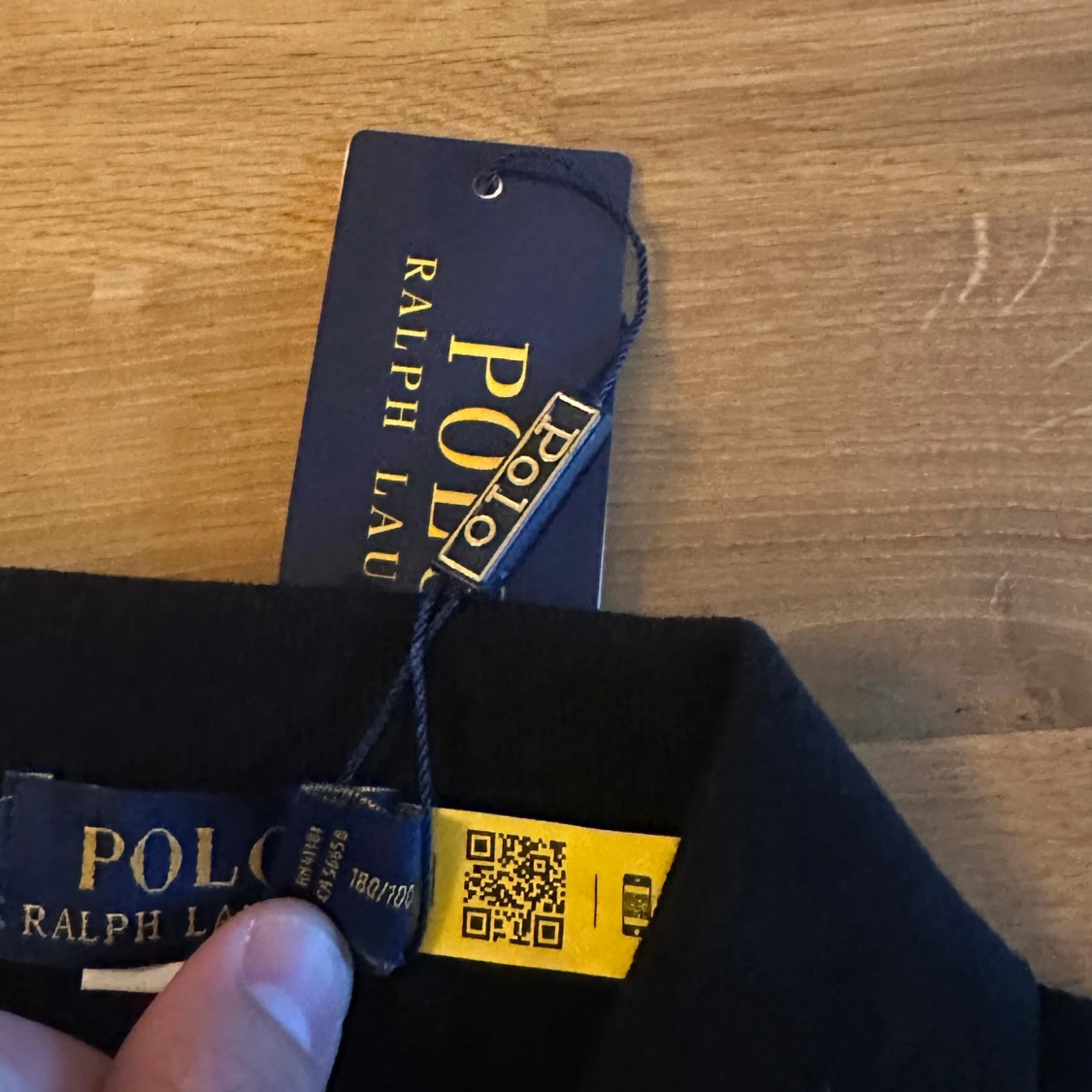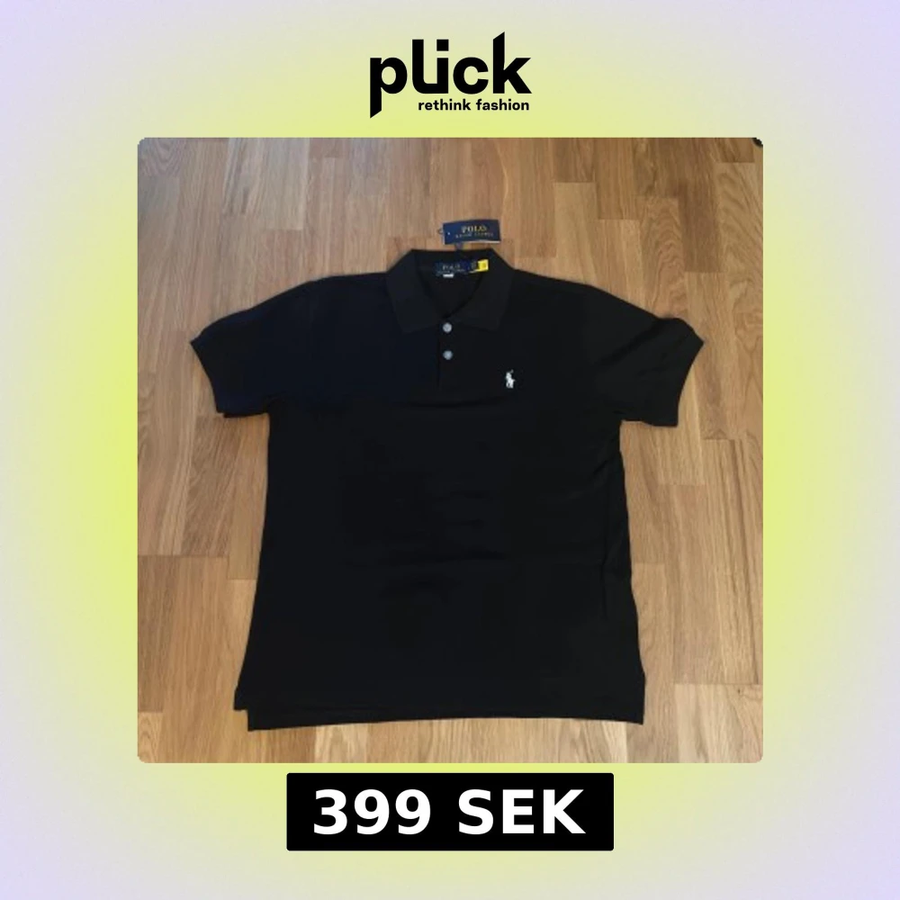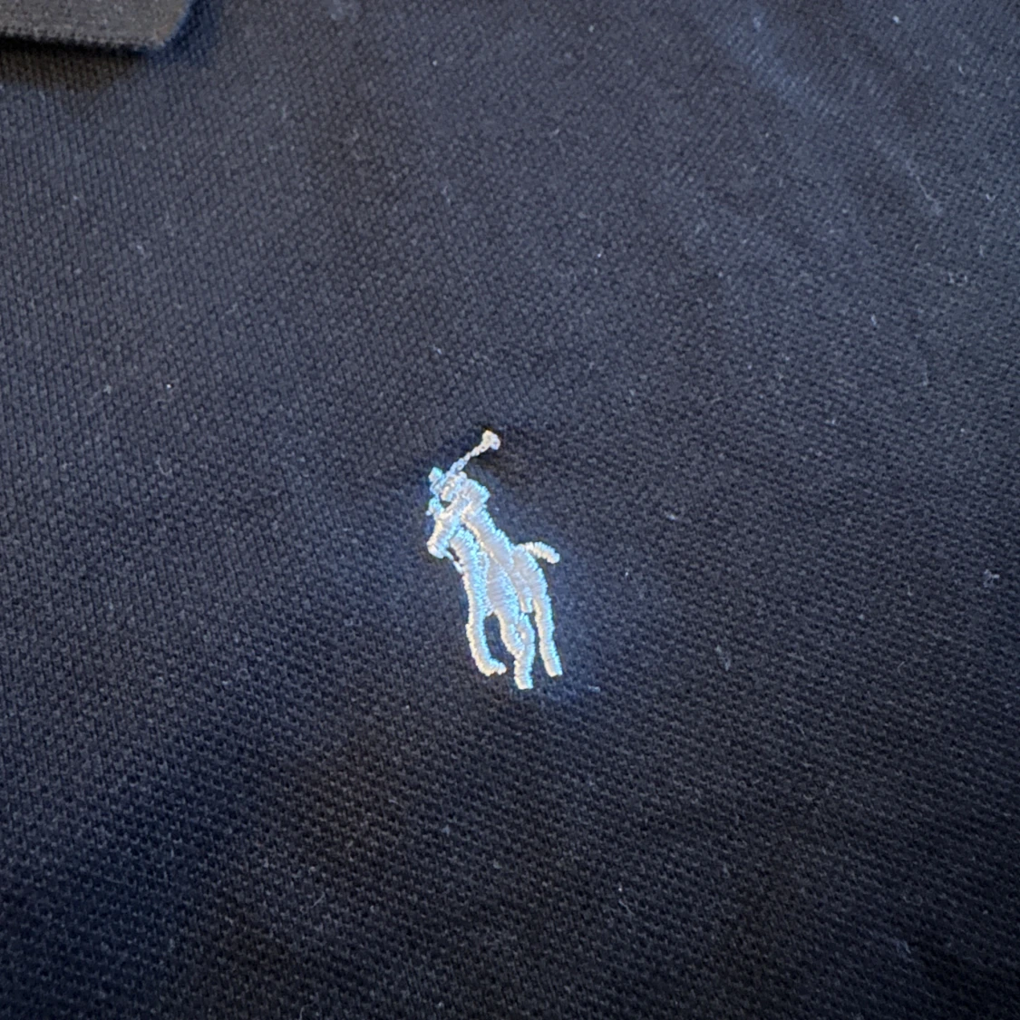 Klassisk svart pikétröja från Polo Ralph Lauren med vit broderad logga på bröstet. Tröjan har krage, tre knappar och korta ärmar. Tillverkad i mjuk bomull som känns skön mot huden. Perfekt för en clean och stilren look.
