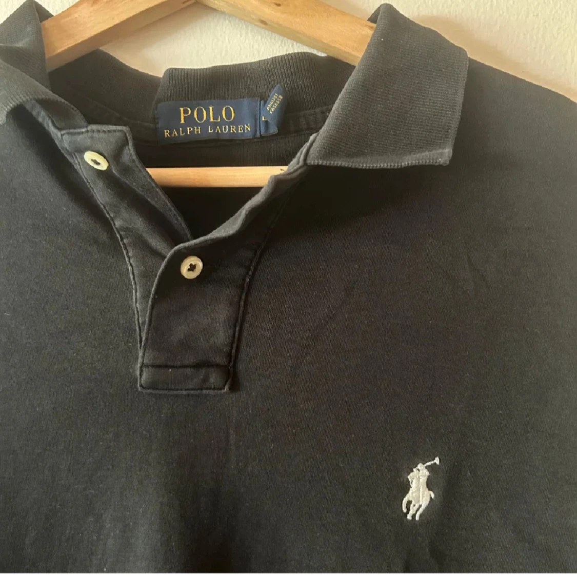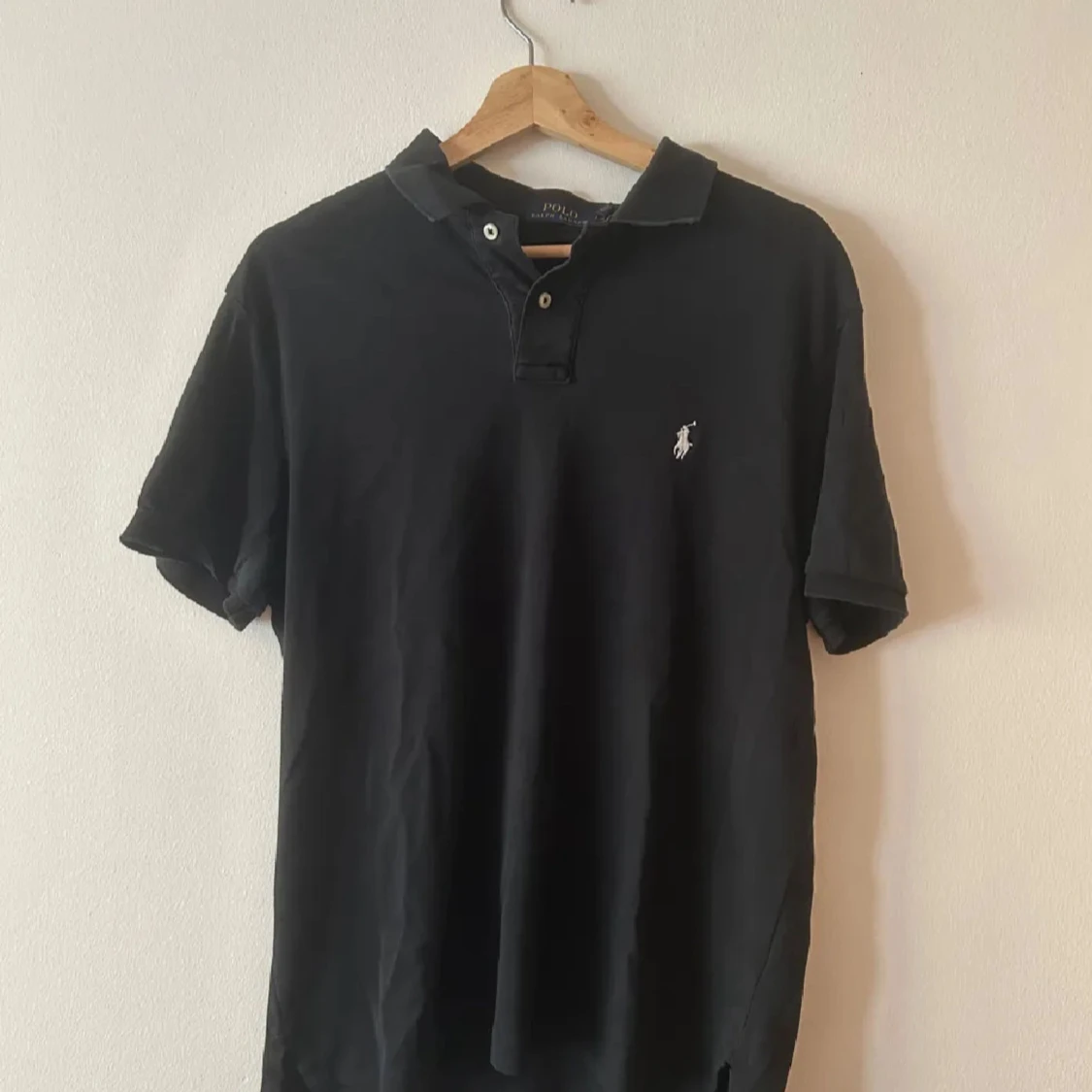Klassisk svart pikétröja från Ralph Lauren med vit broderad logga på bröstet. Tröjan har korta ärmar, krage och två knappar framtill. Tillverkad i mjuk bomull som känns skön mot huden. Perfekt för en clean och stilren look. Matrailet är skönt inte som det flesta piké tröjorna perfekt till sommaren