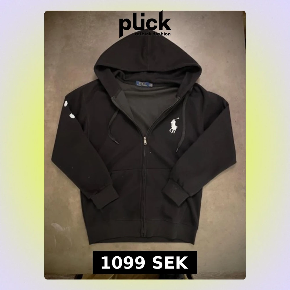 Svart zip hoodie från Polo Ralph Lauren med big pony logga. Storlek M. Riktigt snygg tröja, har knappt kommit till användning då den inte riktigt passade mig.