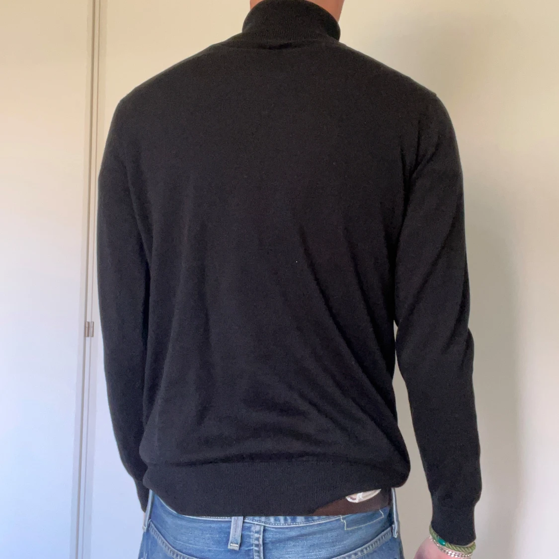 Säljer en klassisk svart polotröja från H&M i storlek M. Tröjan har lång ärm och hög polokrage, perfekt för lager-på-lager eller som den är. Materialet känns mjukt och följsamt mot kroppen.