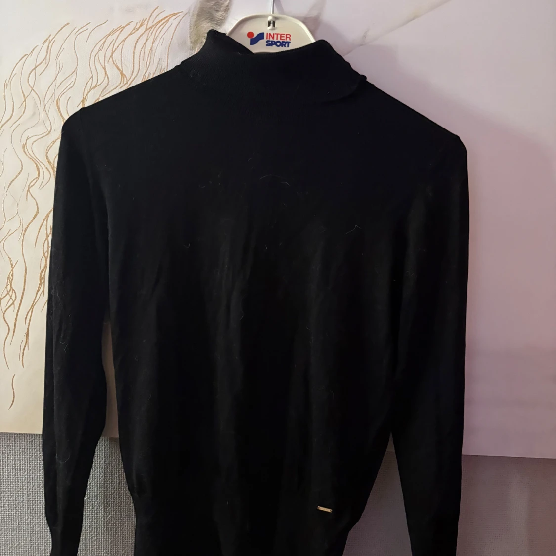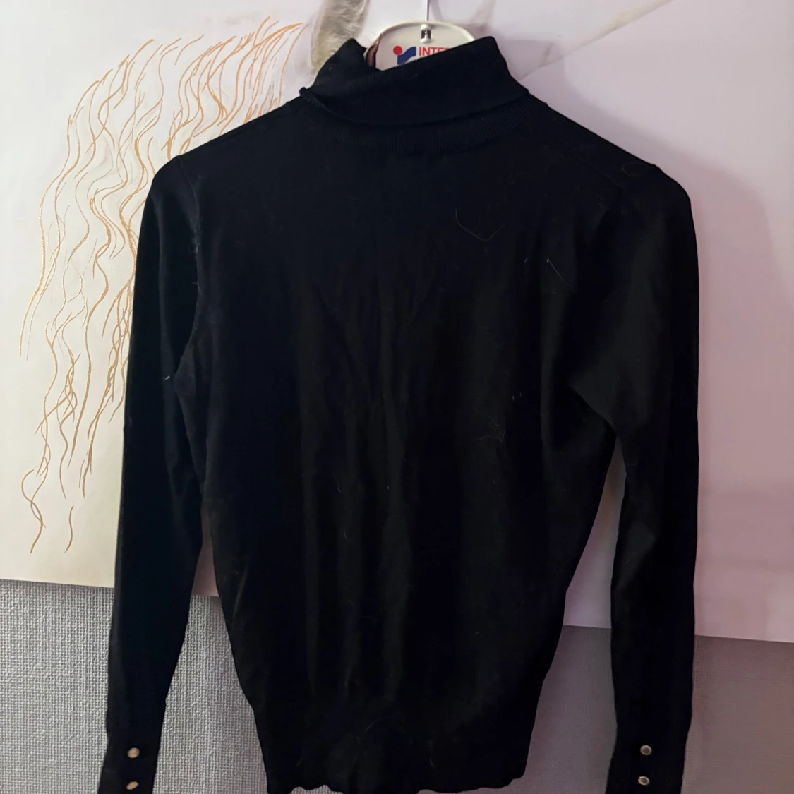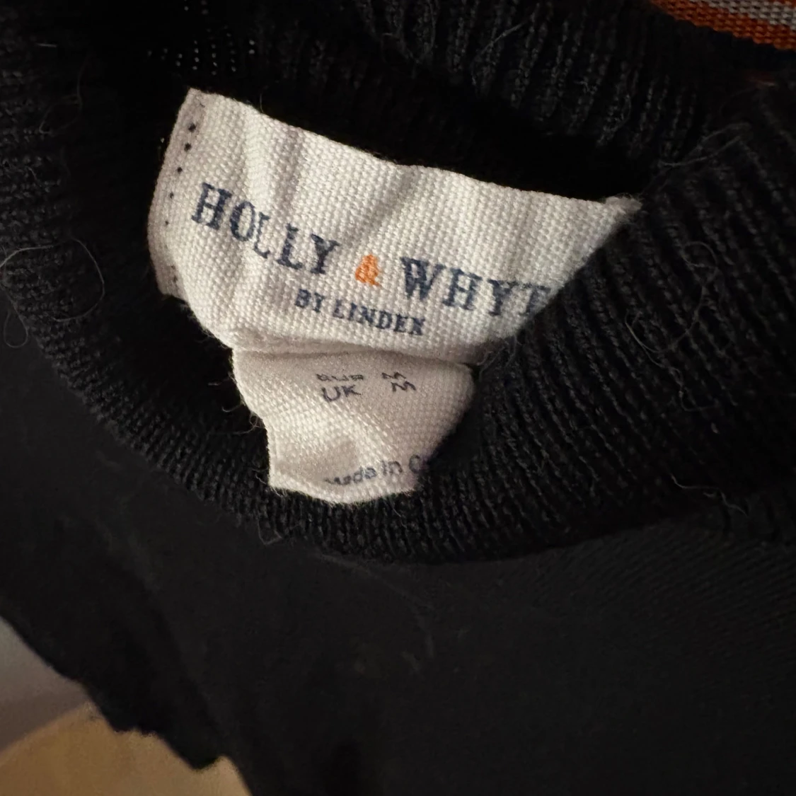 Svart polotröja från Holly & Whyte i storlek M. Tröjan har lång ärm med snygga knappar vid ärmsluten och en klassisk polokrage. Perfekt att styla med jeans eller kjol för en clean look.