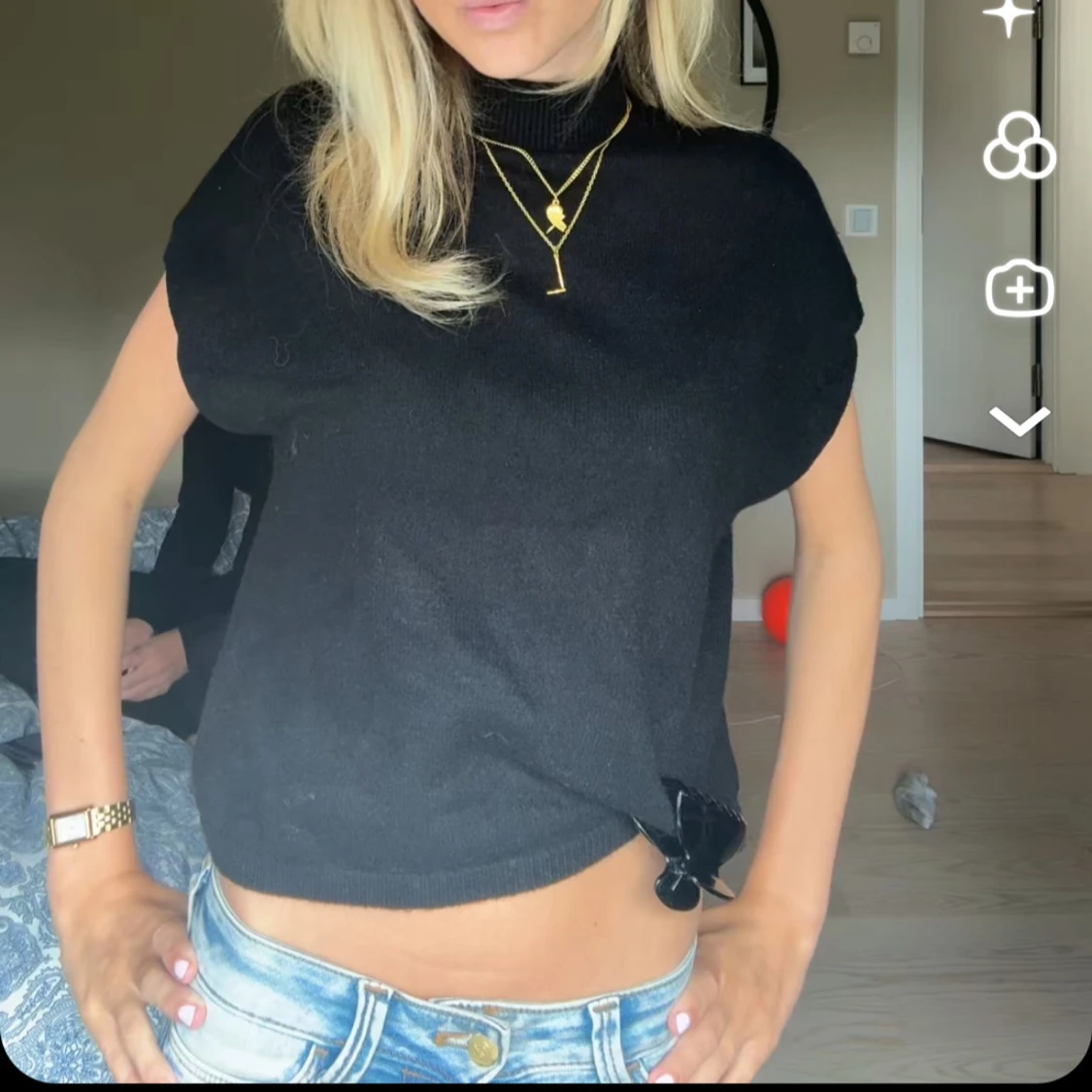 Svart polotröja i stickat material med korta ärmar och hög hals. Tröjan har en loose passform och är perfekt för lager-på-lager. Enkel och stilren design som passar till jeans eller kjol.