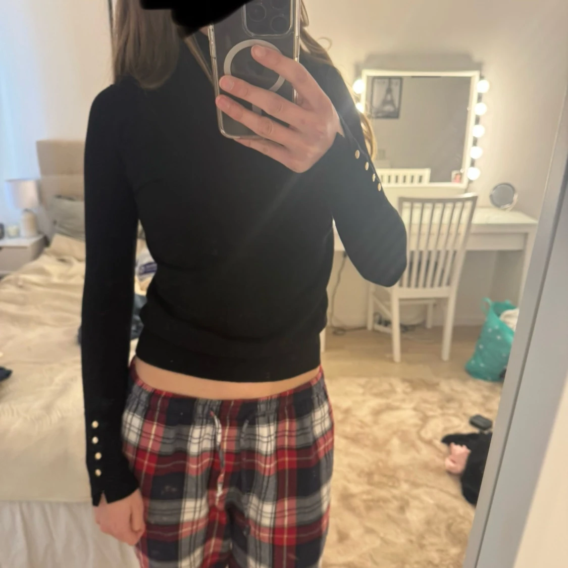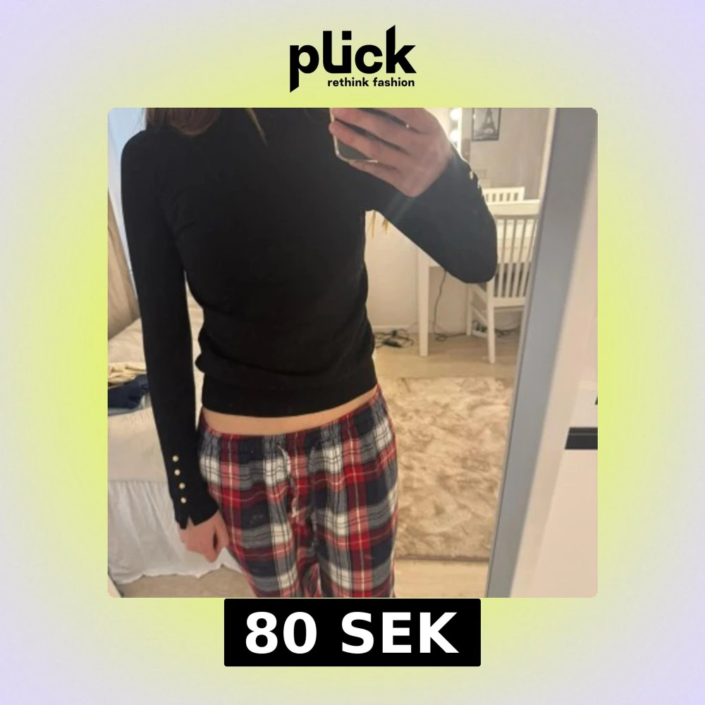 Säljer en svart polotröja med långa ärmar och snygga guldfärgade knappar vid ärmsluten. Tröjan är tight och har en klassisk, stilren look som passar till mycket. Perfekt basplagg för garderoben.
