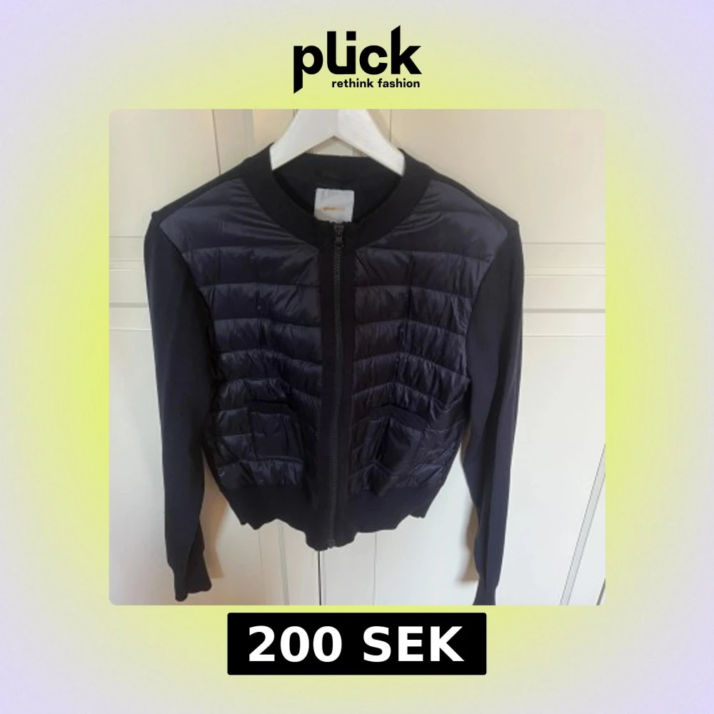 Snygg svart kofta från Gina Tricot med quiltad framsida och dragkedja. Långärmad modell med ribbade muddar och två fickor framtill. Perfekt för lager-på-lager under höst och vinter.