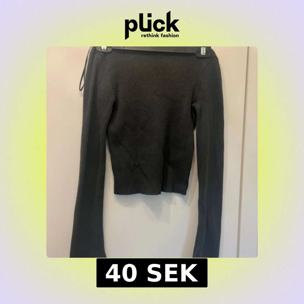Säljer en svart, ribbstickad tröja med croppad passform och långa ärmar. Tröjan har en bred, rundad urringning både fram och bak vilket ger en snygg och trendig look. Perfekt att styla med jeans eller kjol för en chill vibe.