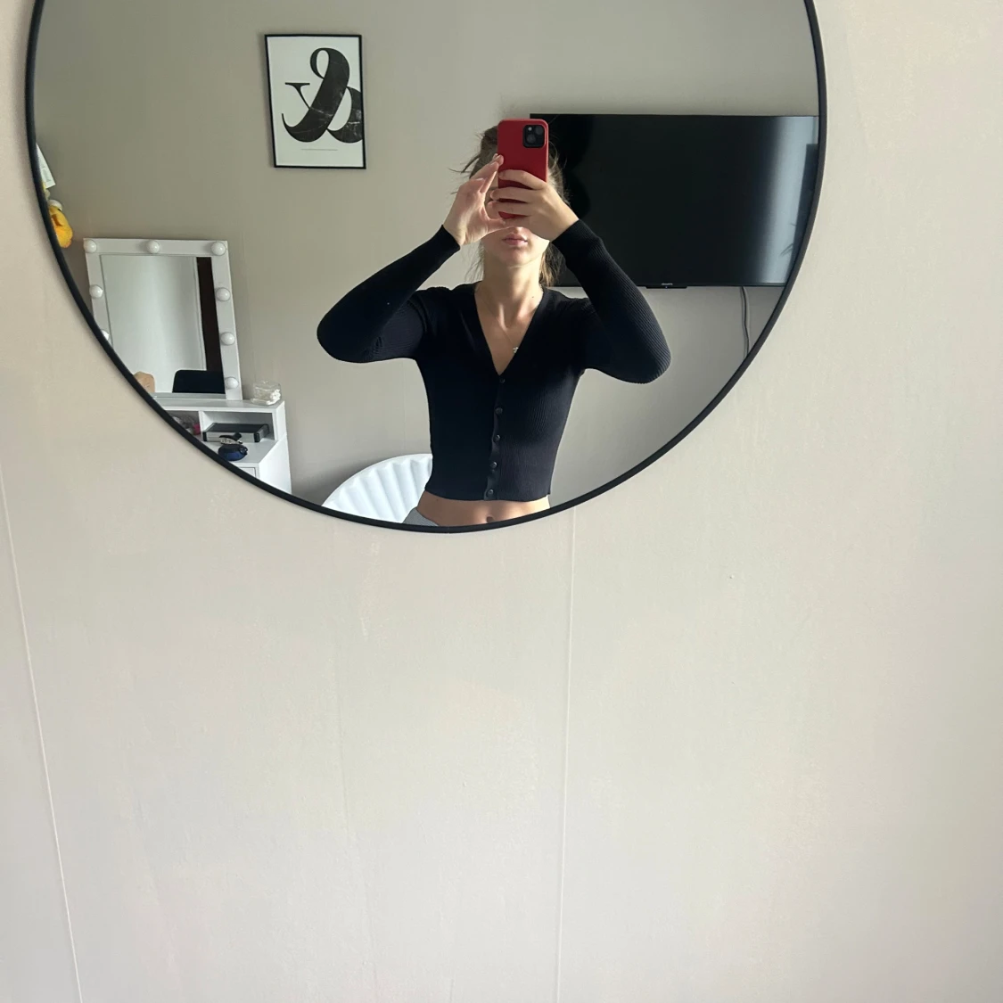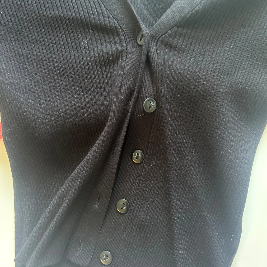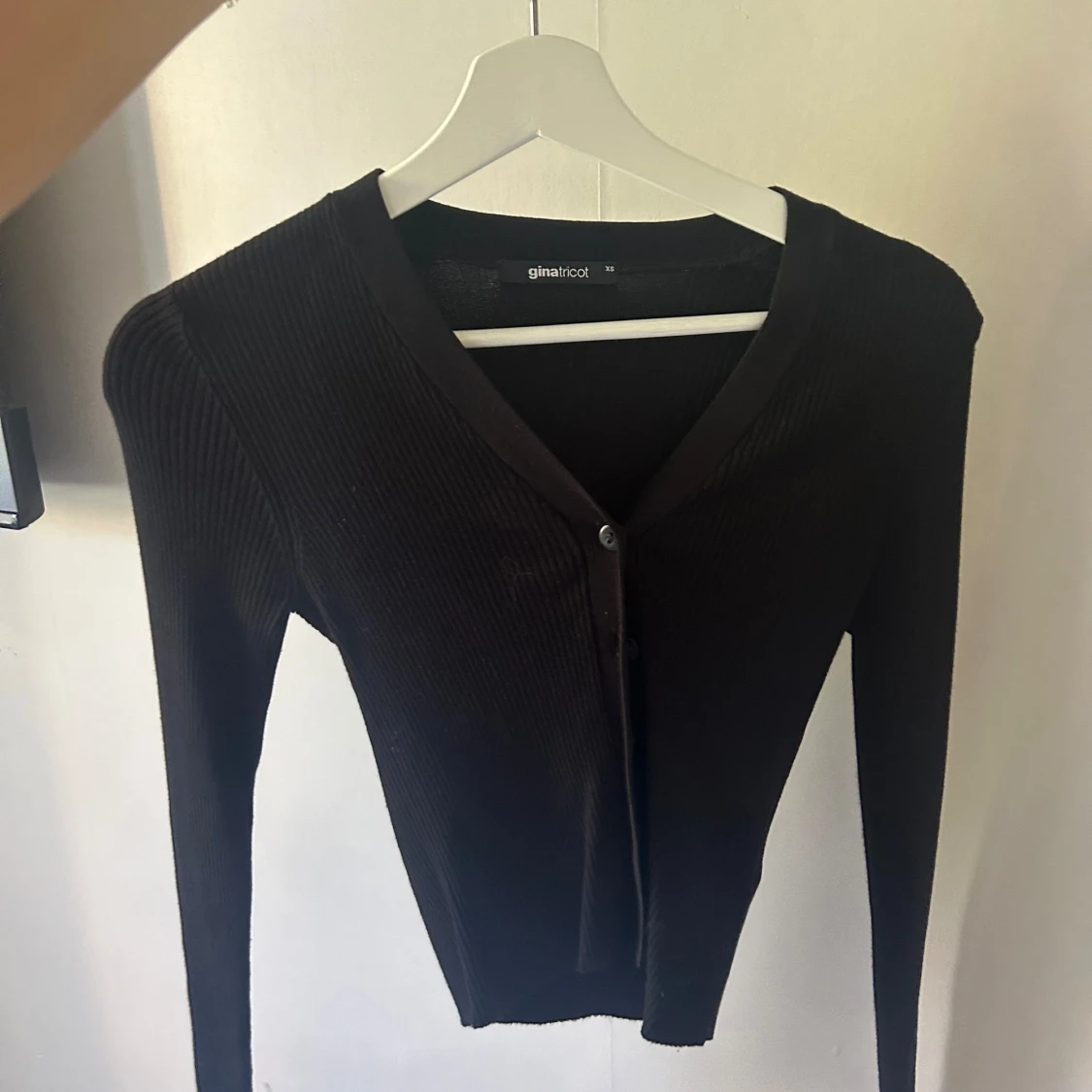 Säljer en snygg svart ribbad kofta från Gina Tricot. Den har en v-ringad hals och knappar framtill. Perfekt för höst och vinter, och kan stylas både uppklätt och nedklätt. Koftan är i nyskick och supermjuk!🖤
