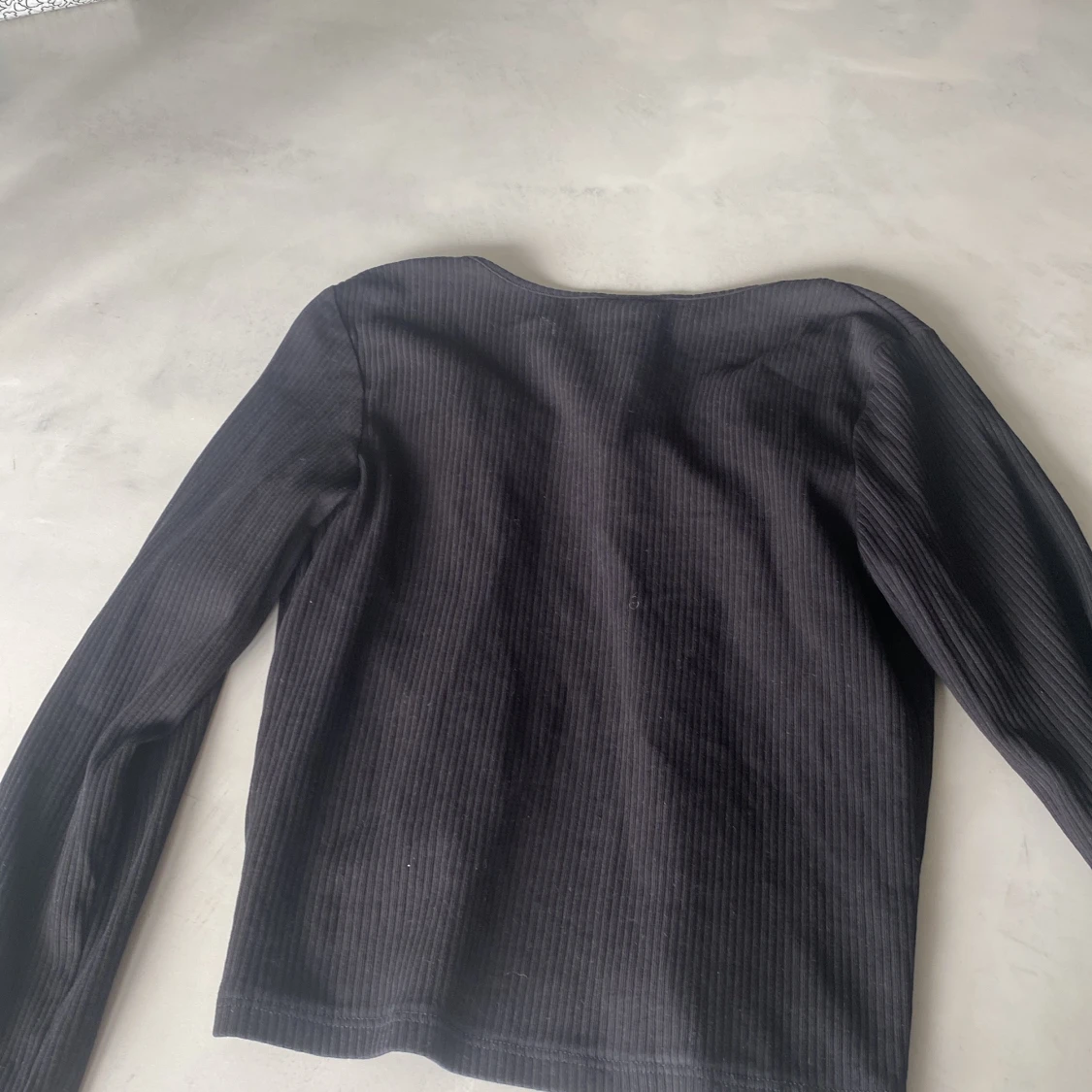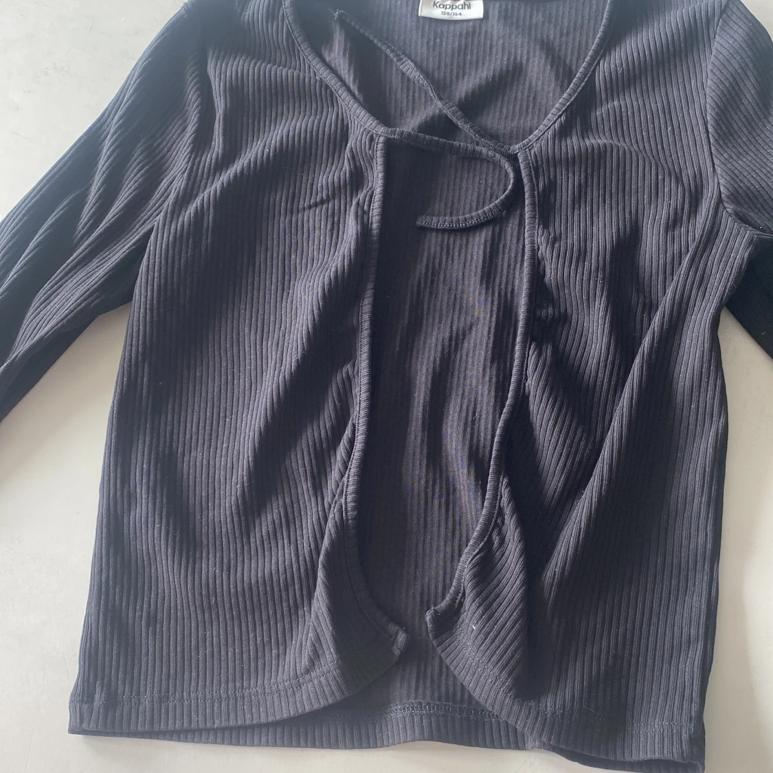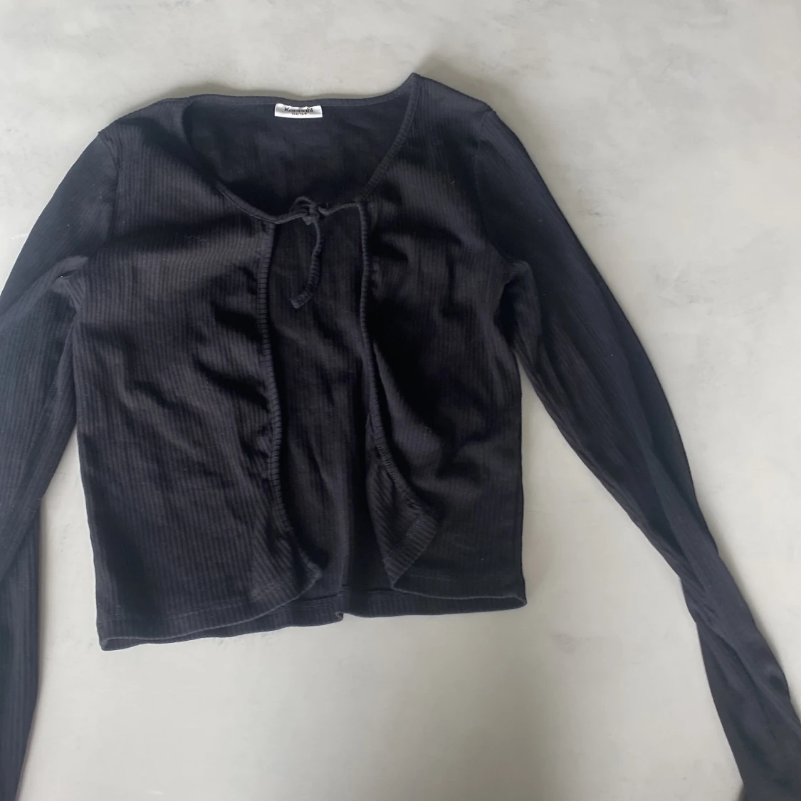 Svart ribbad kofta från Kappahl med lång ärm och knytning framtill. Modellen är tunn och har en enkel, stilren look som passar perfekt till lager-på-lager. Materialet är mjukt och stretchigt för en bekväm känsla hela dagen.