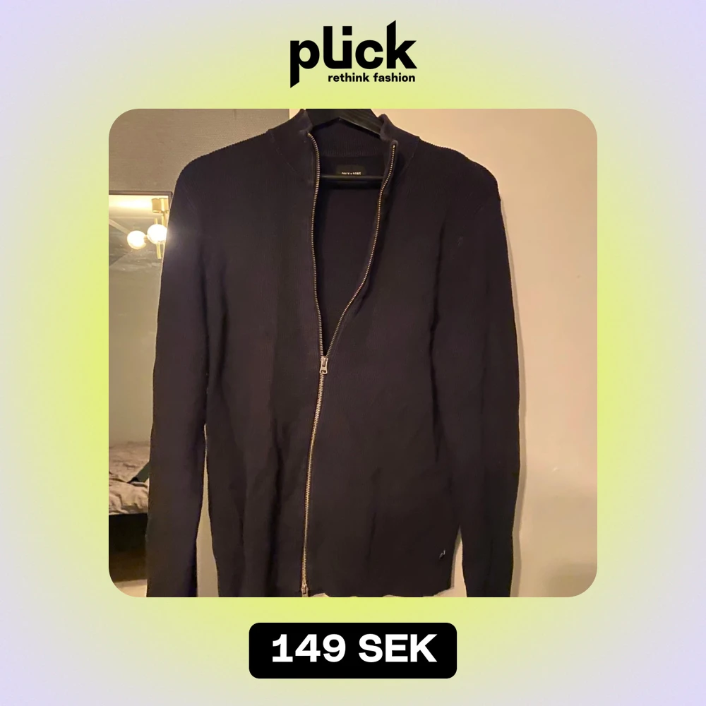 Säljer en stilren svart ribbad kofta från Only & Sons. Den har en praktisk dragkedja framtill och är perfekt för både vardag och fest. Koftan är i bra skick och passar till många olika outfits. Perfekt för höst och vinter!
