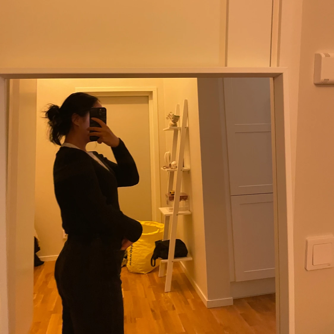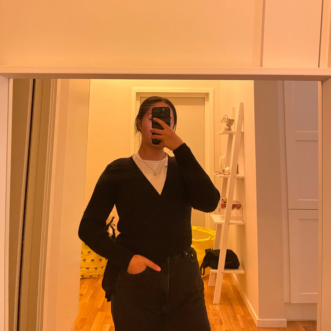 Svart ribbad kofta med v-ringning och långa ärmar. Koftan har en klassisk passform och är perfekt att slänga över en t-shirt eller topp. Materialet är stickat och ger en mysig känsla. Enkel och stilren design som funkar till många outfits.