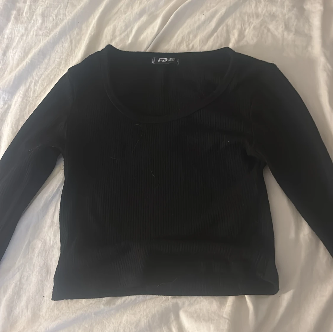 Svart ribbad långärmad topp