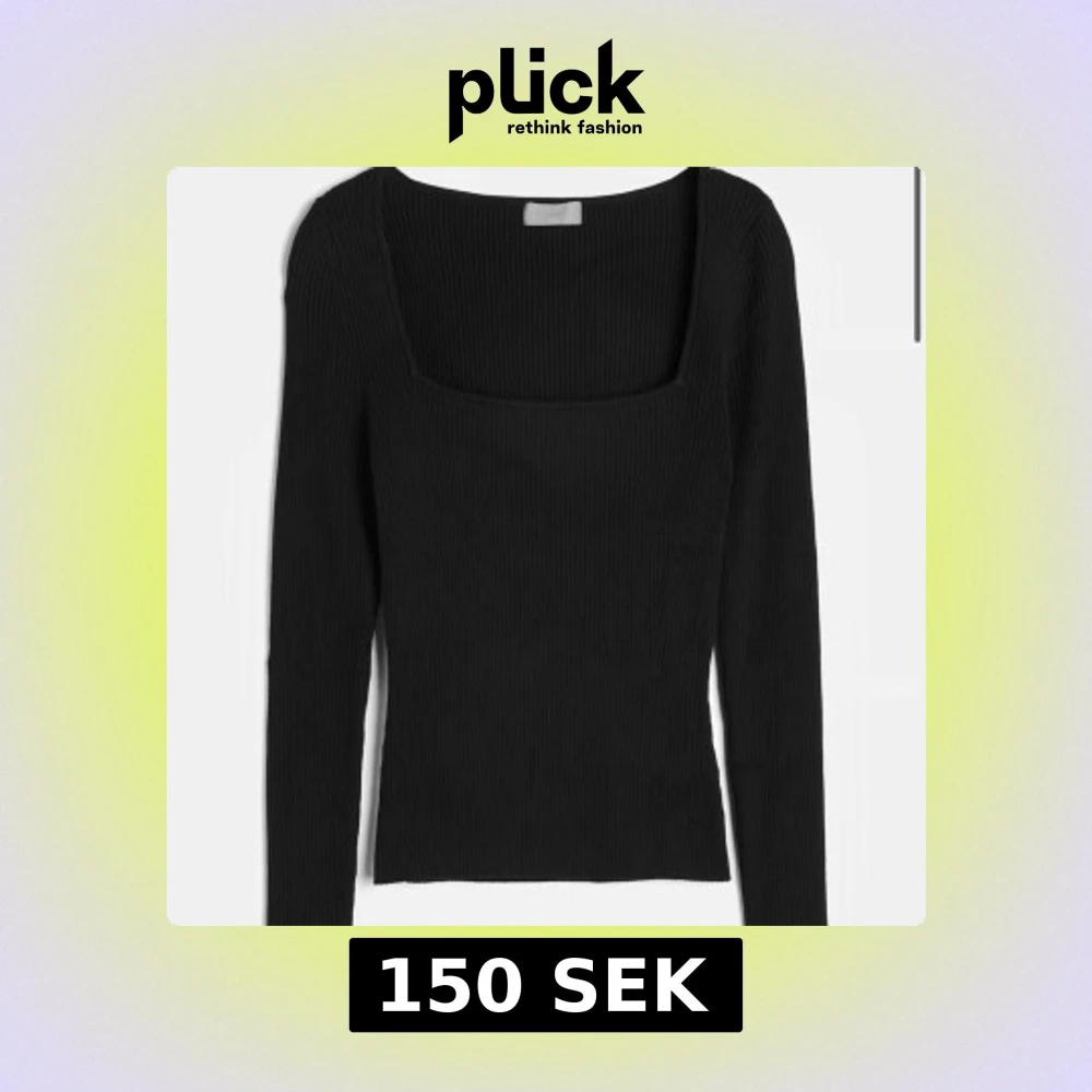 Säljer en helt oanvänd svart ribbad långärmad topp med fyrkantig ringning som tyvärr inte kommit till användning 💗