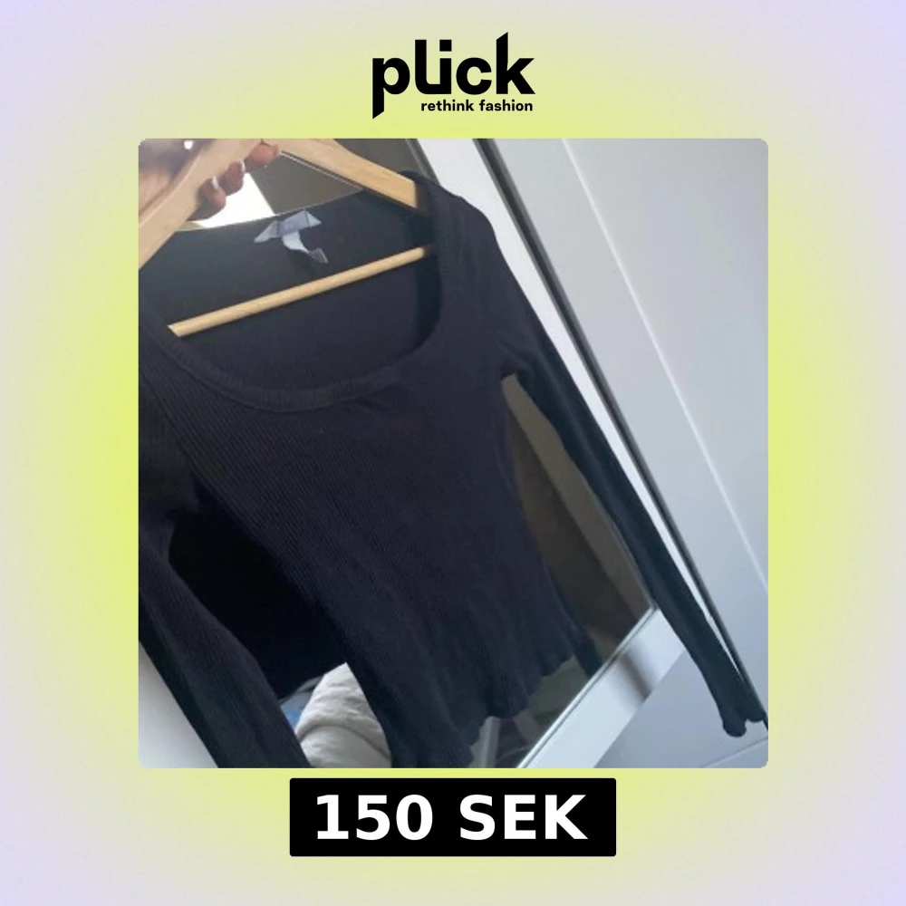 Svart ribbad långärmad topp från H&M i storlek XS. Tröjan har en rundad halsringning och vågig kant nertill för en extra snygg detalj. Perfekt att styla med jeans eller kjol för en clean look.