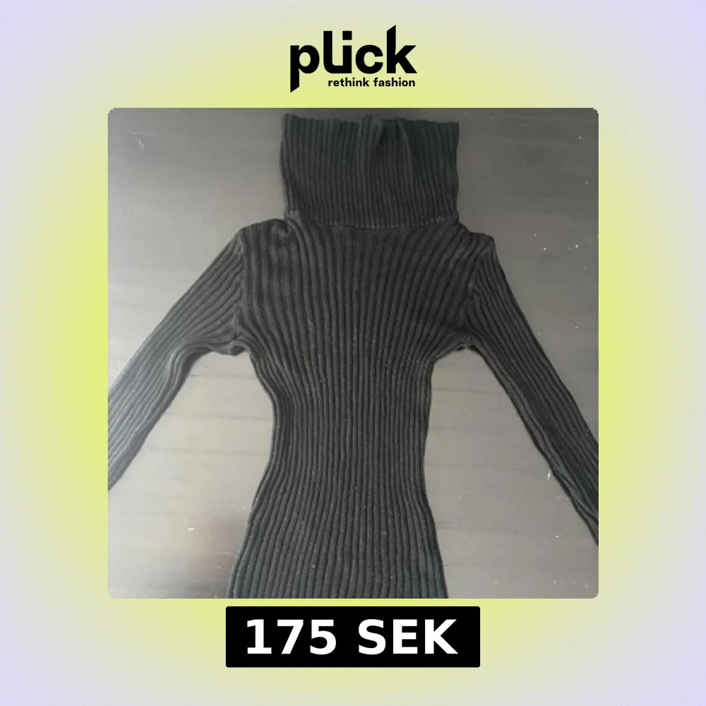 Snygg svart ribbad tröja med ned vik var krage. Väldigt fin i många olika stilar!