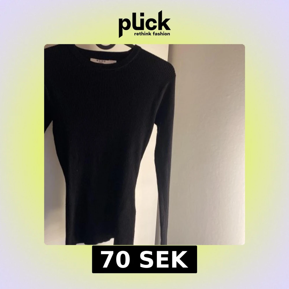 Säljer en svart, tight och ribbad långärmad tröja från NA-KD. Perfekt basplagg med rund halsringning och smal passform. Enkel att styla till olika outfits och superbekväm att bära.