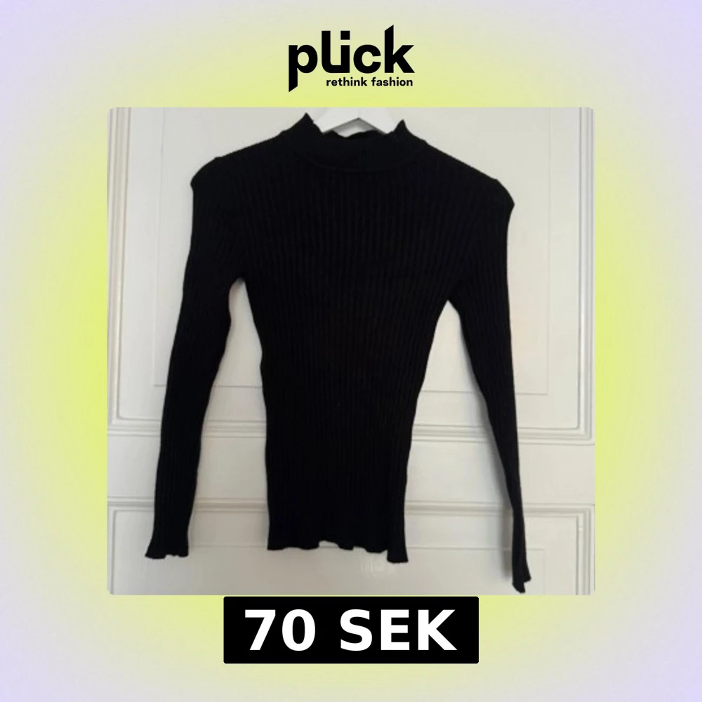 Säljer en svart ribbad polotröja med lång ärm och tight passform. Tröjan har hög hals och är tillverkad i ett stretchigt stickat material som sitter snyggt på kroppen. Perfekt att styla med jeans eller kjol för en clean look.