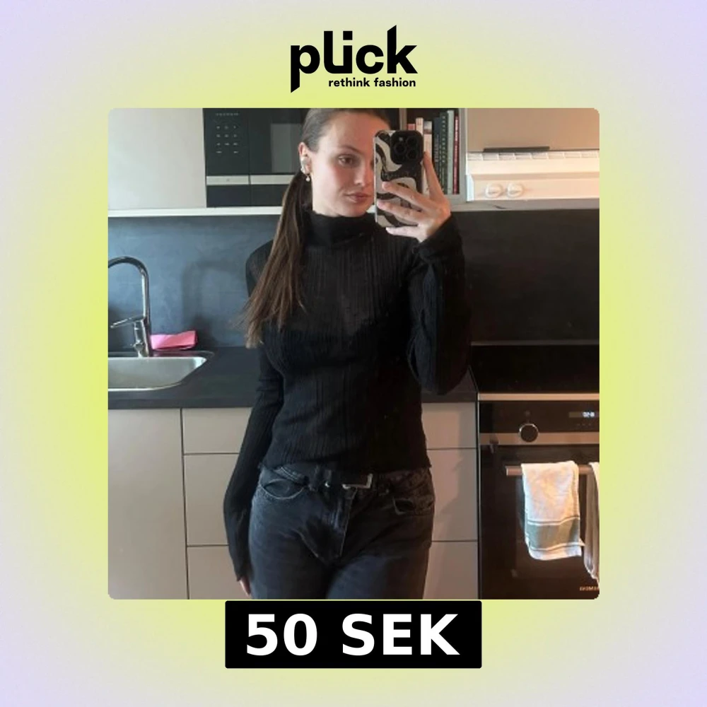 Snygg svart ribbad polotröja med långa ärmar. Perfekt för en stilren look och passar bra till jeans eller kjol. Tröjan har en hög krage som ger extra värme och stil.