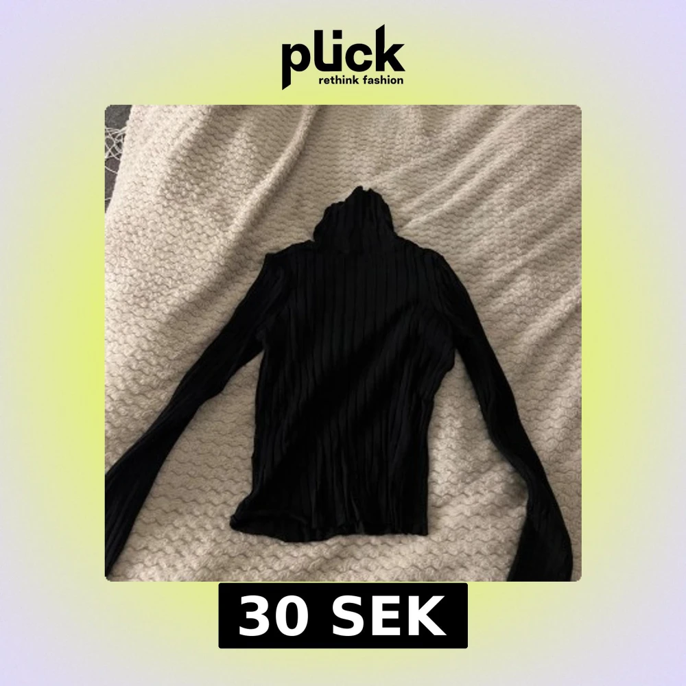 Svart ribbad polotröja från H&M i storlek XS. Tröjan har lång ärm och hög polokrage! 🥰