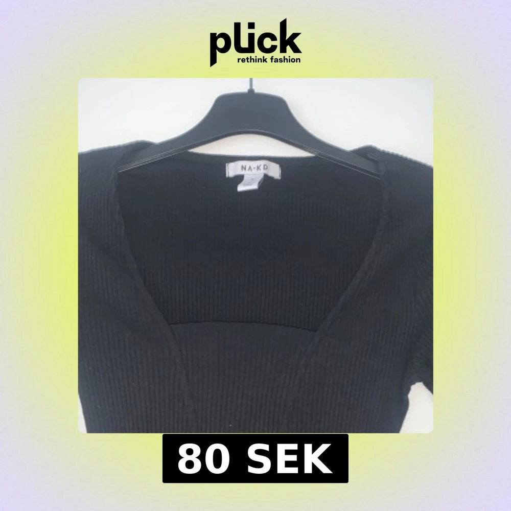 Snygg svart ribbad topp från NA-KD med lång ärm och djup v-ringning. Perfekt för en stilren look. Toppen är figurnära och passar bra till både jeans och kjol.