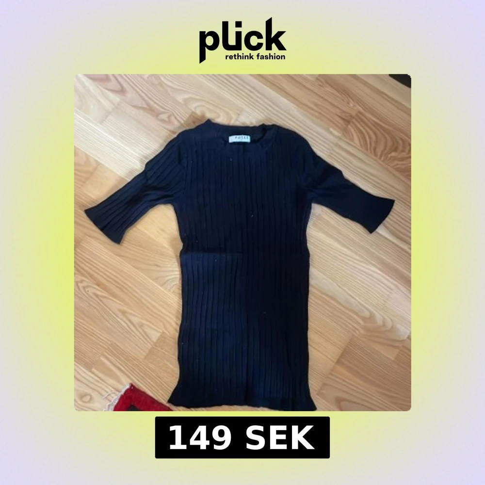 Säljer en svart ribbad topp från Pieces. Toppen har en tight passform och trekvartsärmar, perfekt för en stilren look. Den är tillverkad i ett mjukt material som sitter bekvämt mot kroppen.