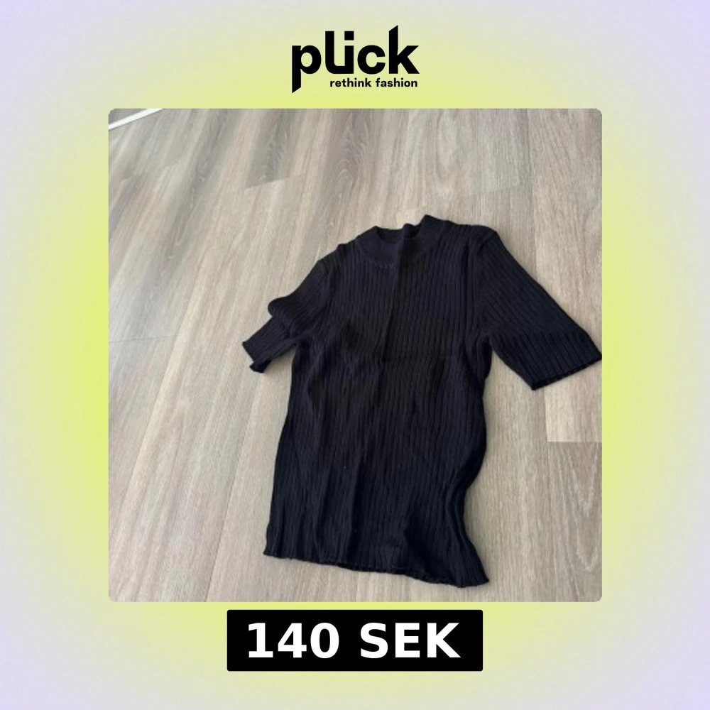 Säljer en svart ribbad topp med hög hals och halvärm. Toppen har en tight passform och är perfekt att styla till olika outfits. Materialet är stretchigt och bekvämt.