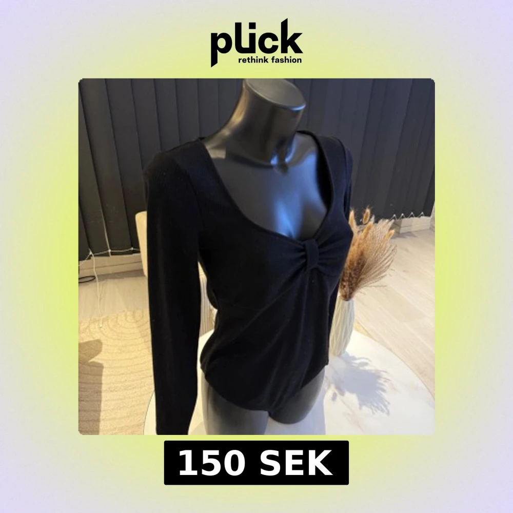 Snygg svart ribbad topp med långärmad design och en knytning framtill. Perfekt för en stilren look. Passar bra i m/l storlek. Jag rekommenderar den varmt.🌸👌