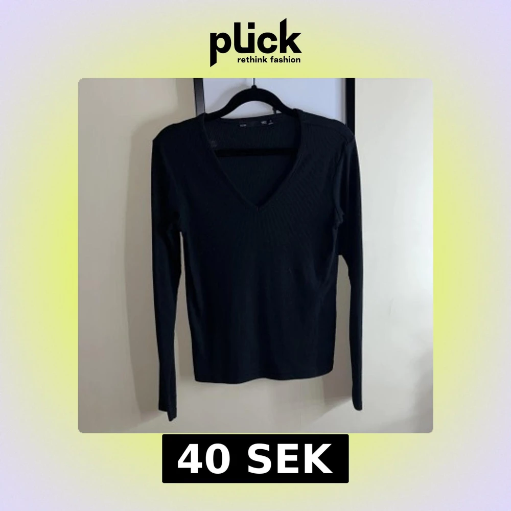 Säljer en stilren svart ribbad tröja från 157. Tröjan har en v-ringad hals och långa ärmar, perfekt för en enkel och snygg look. Passar bra till både jeans och kjol. 🖤