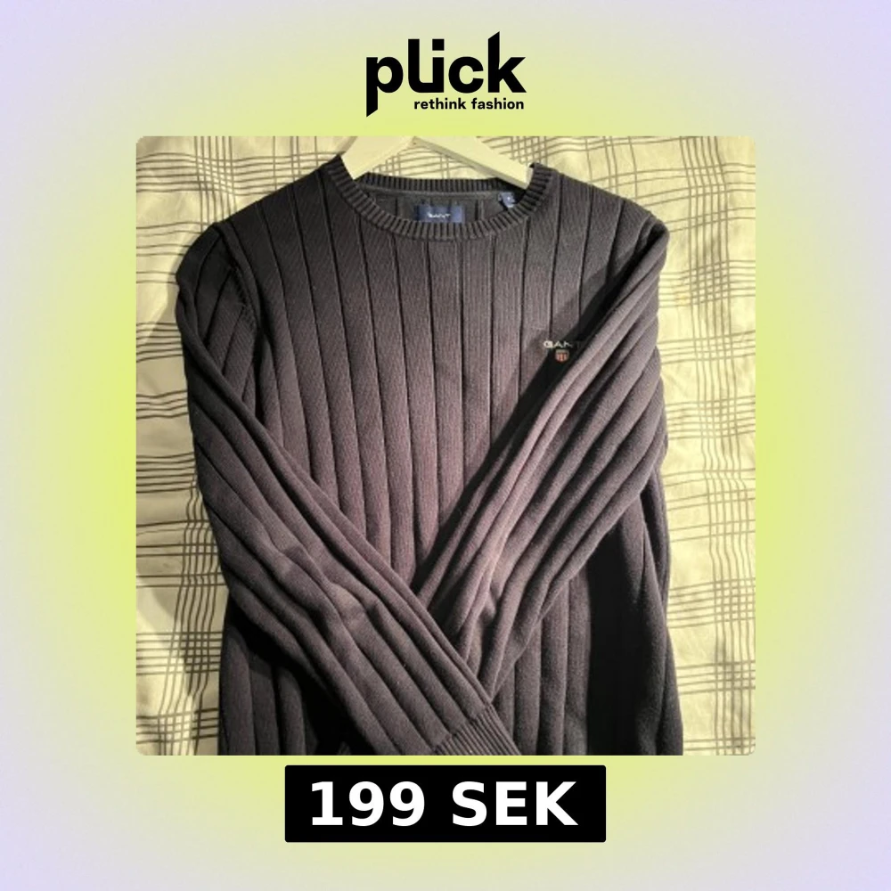 Säljer en svart ribbstickad tröja från GANT i premium bomull. Tröjan har rund halsringning, diskret GANT-logga på bröstet och långa ärmar. Perfekt för dig som gillar klassisk och stilren look med en modern touch.