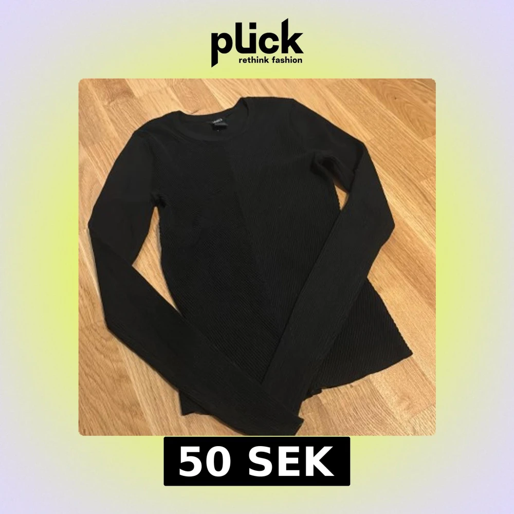 Svart långärmad tröja från Lindex i storlek S. Tröjan har en ribbad struktur på både fram- och baksida, rund halsringning och är figurnära i modellen. Perfekt att styla med jeans eller kjol för en clean look.