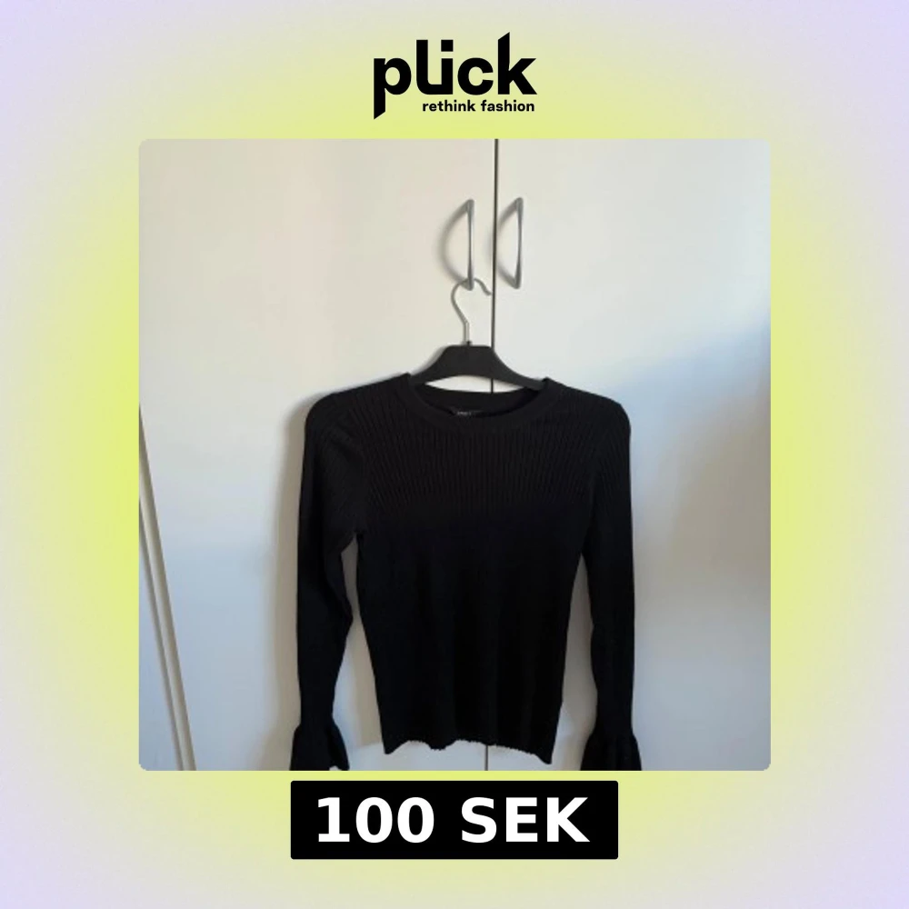 Säljer en stilren svart ribbad tröja med långa ärmar. Perfekt för en enkel och elegant look. Passar till många olika outfits och tillfällen.
