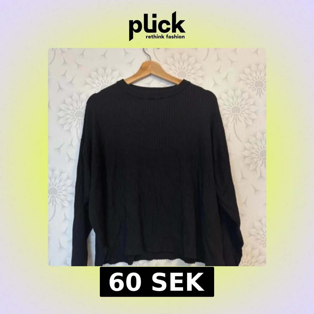 Säljer en stilren svart ribbad tröja med lång ärm. Perfekt för en avslappnad look. Tröjan har en lös passform och är gjord i ett mjukt material.