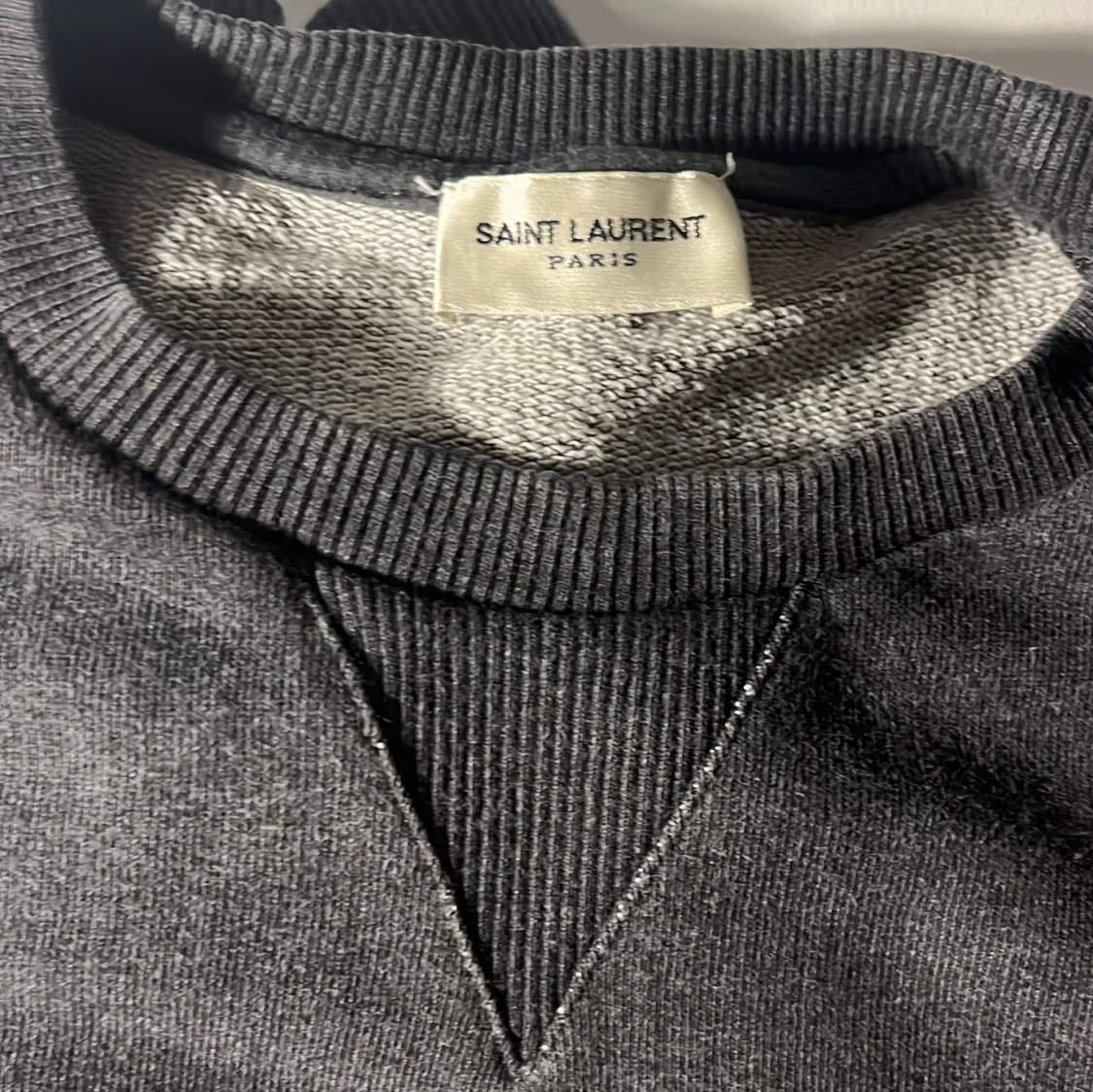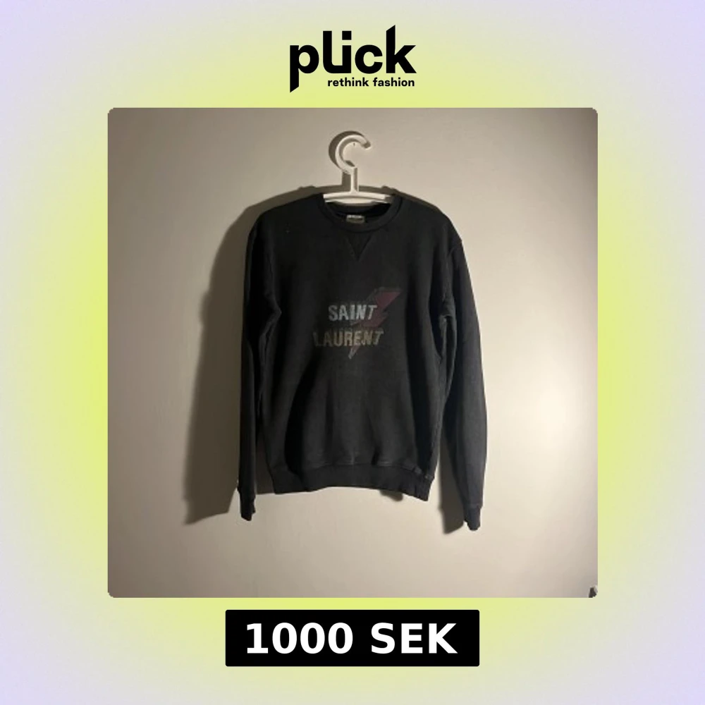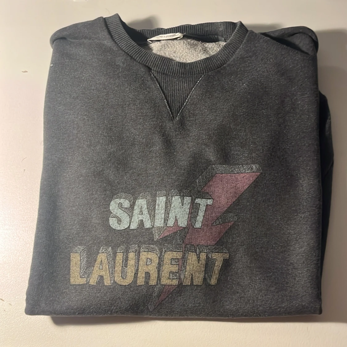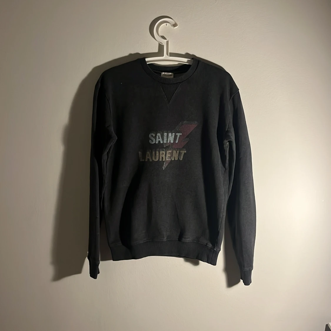 Svart sweatshirt från Saint Laurent med coolt tryck på bröstet och blixtdetalj. Tröjan har ribbad rund hals och muddar vid ärmslut och nederkant. Materialet är mjuk bomull och insidan är frottéliknande för extra komfort. Perfekt för dig som gillar streetstyle.
