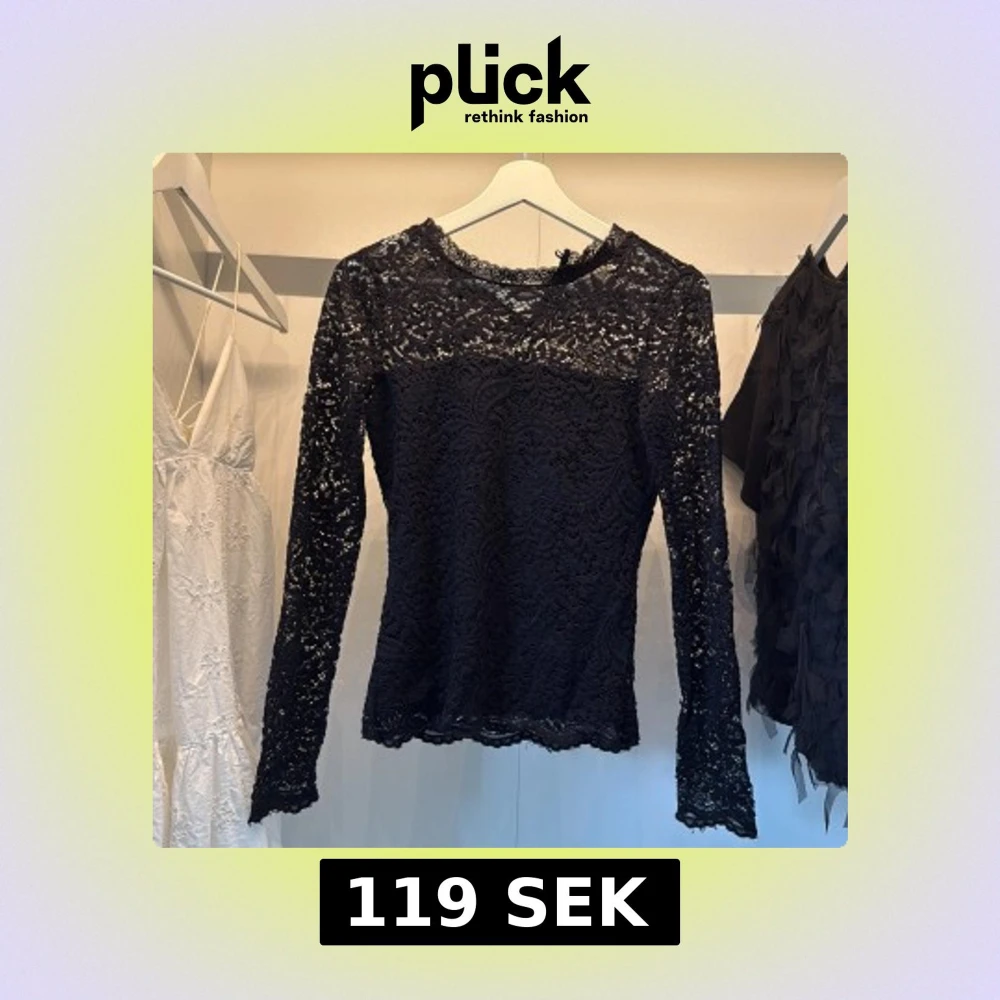 Supersnygg svart blus i spets med långärmad passform och rund hals.