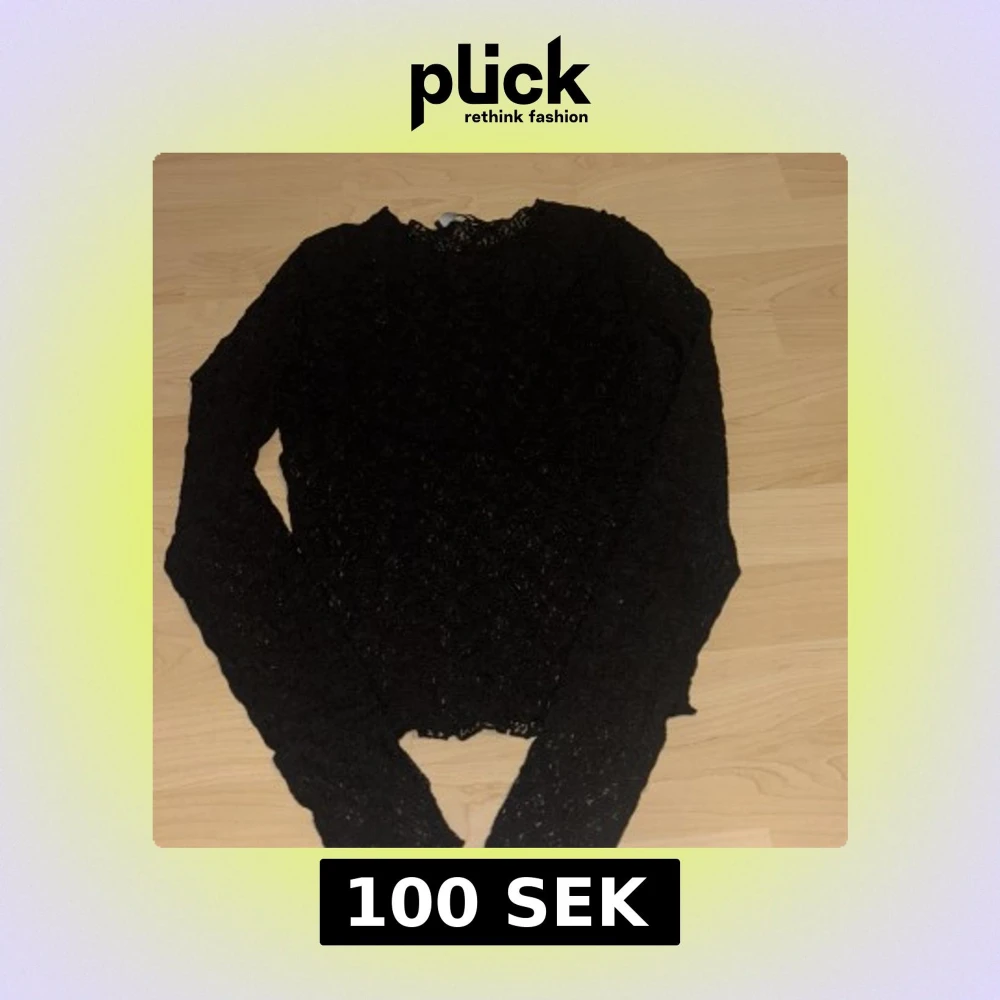 Säljer en svart blus i spets med lång ärm och rund hals. Blusen har ett elegant och lite transparent utseende, perfekt för dig som gillar en stilren look med detaljer. Passar dig som vill ha något snyggt och enkelt att matcha med jeans eller kjol.