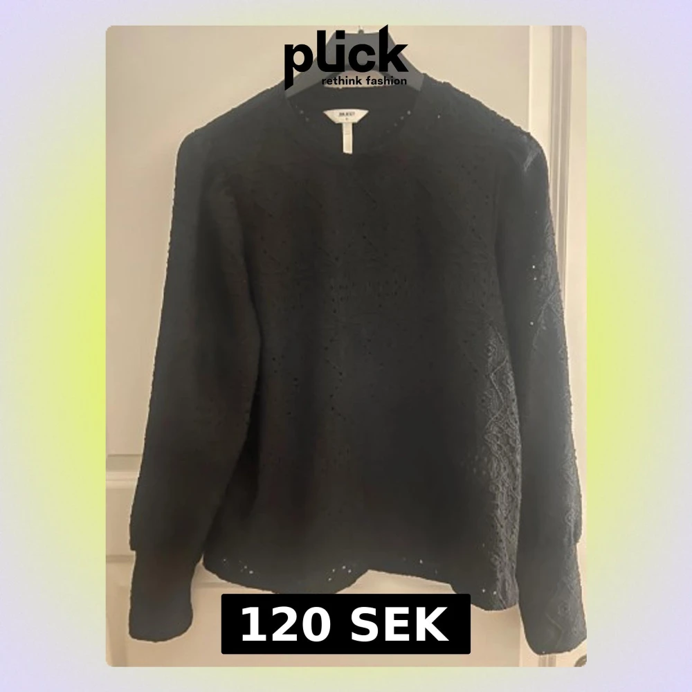 Svart långärmad tröja från Object med snyggt spetsmönster över hela plagget. Rund halsringning och mjukt material som känns skönt mot huden. Perfekt för dig som gillar detaljer och vill ha en unik look.