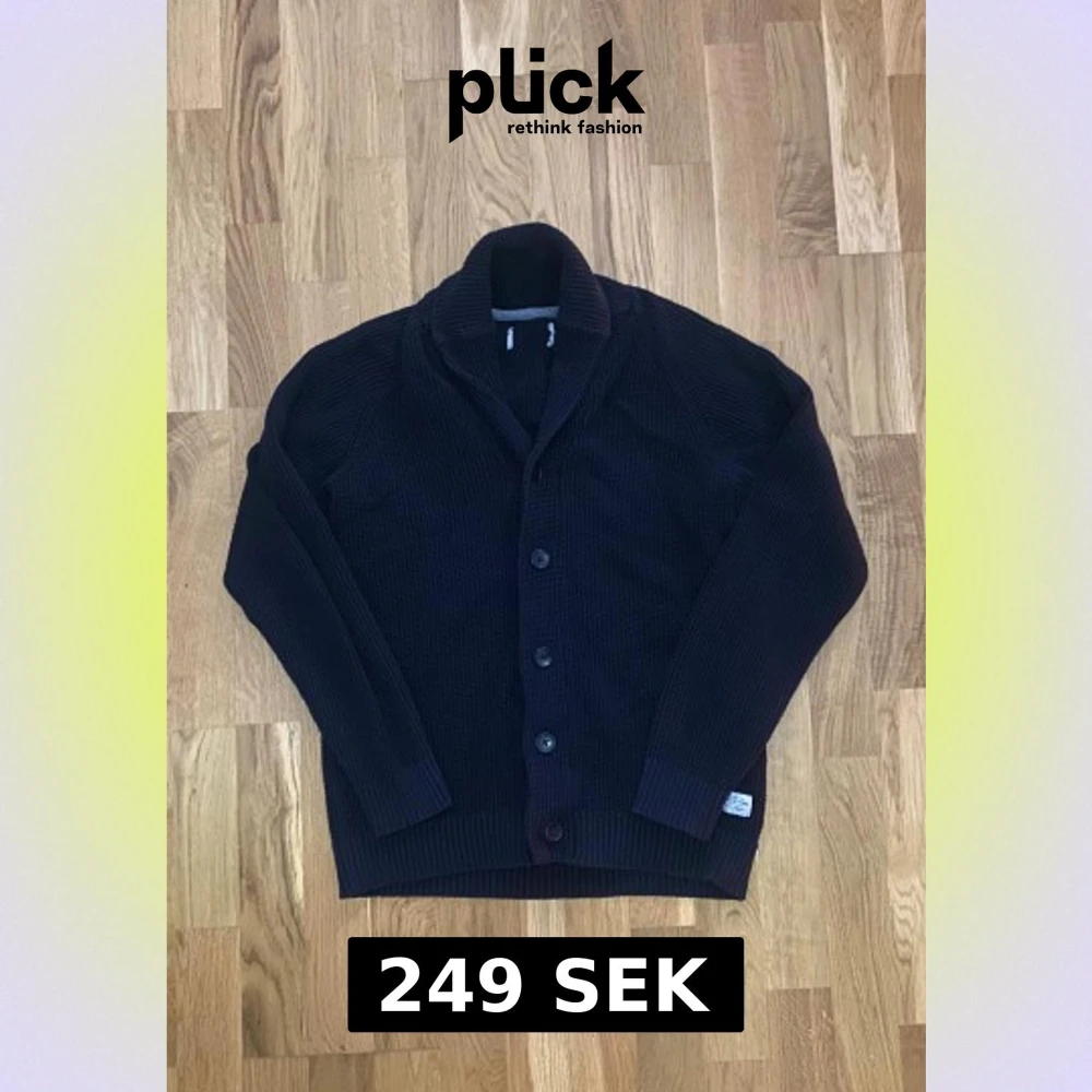 Mysig svart stickad kofta från Jack & Jones med grov ribbad struktur och klassisk krage. Koftan har knappar framtill och en liten etikett på nederkanten. Perfekt för dig som gillar stilrena och bekväma plagg. Storlek M och passar mig som är 175cm perfekt! Vid fler frågor eller funderingar tveka inte på att skriva!