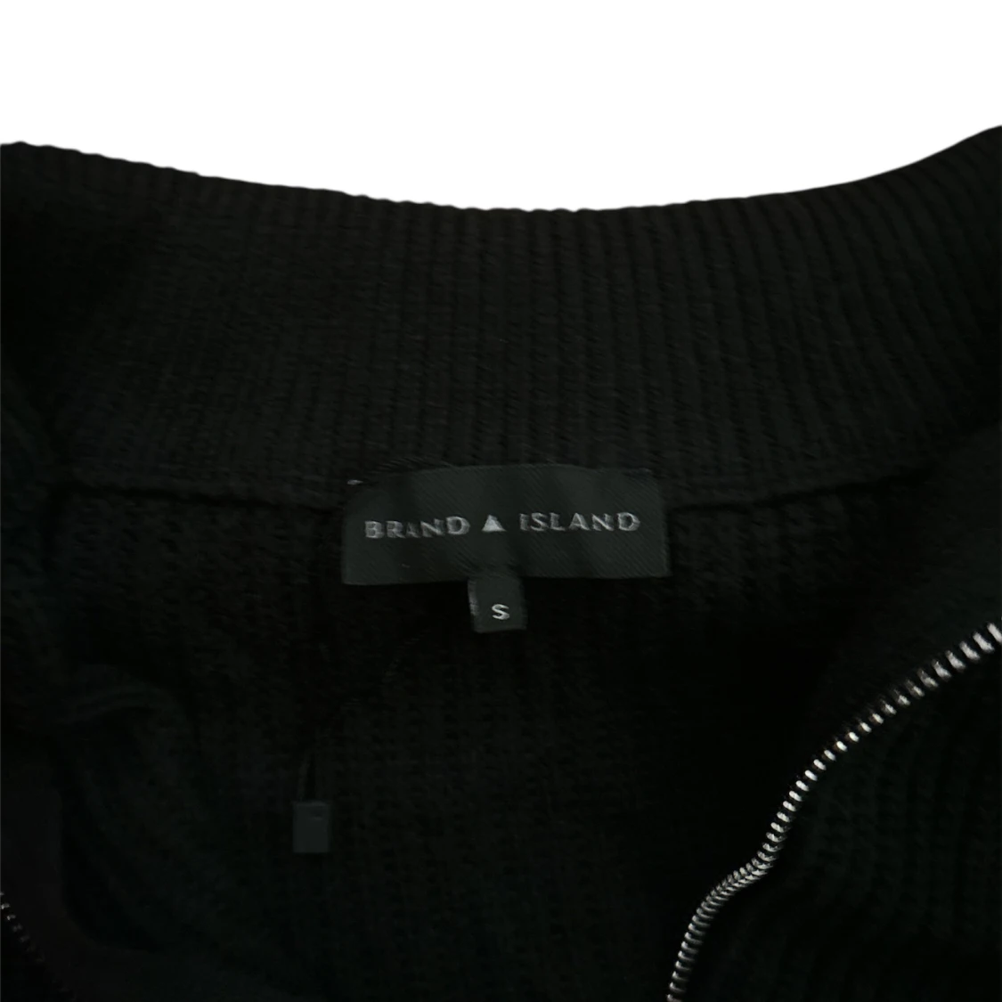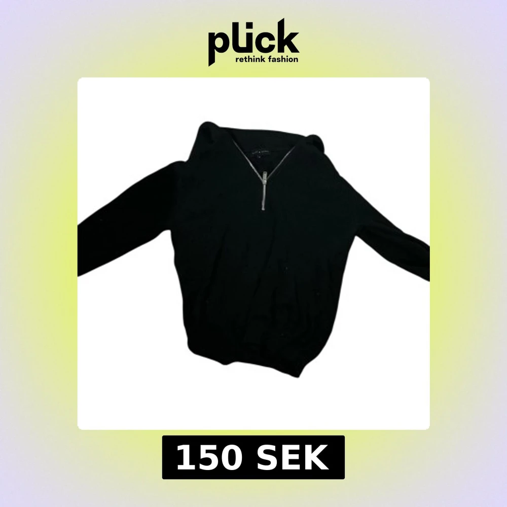 Svart stickad hoodie från Brand Island i storlek S. Tröjan har en ribbad struktur, huva och en snygg half zip-dragkedja framtill. Perfekt för dig som gillar en enkel men stilren look med lite edge.
