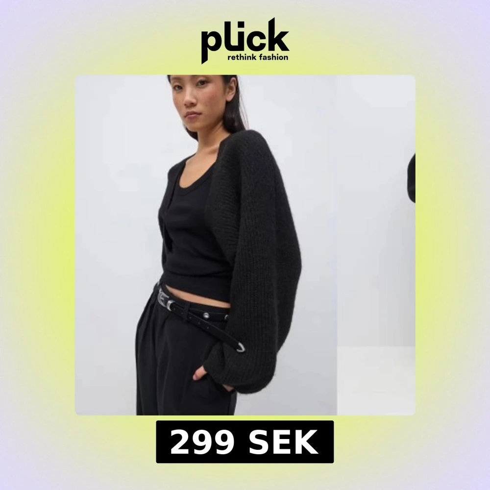 Säljer en svart stickad bolero med långa ärmar. Perfekt för kyligare dagar och enkel att matcha med olika outfits. Koftan har en lös passform och är supermysig att ha på sig.