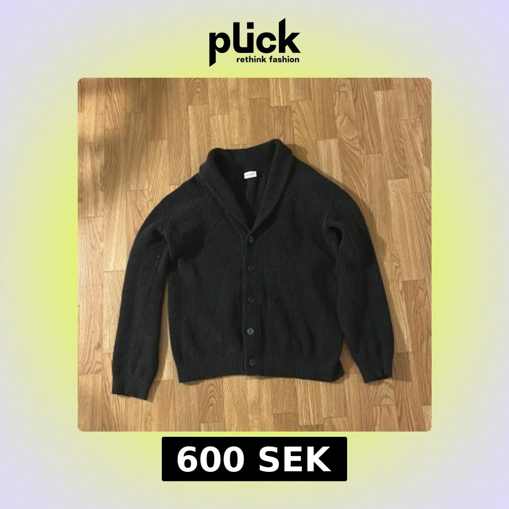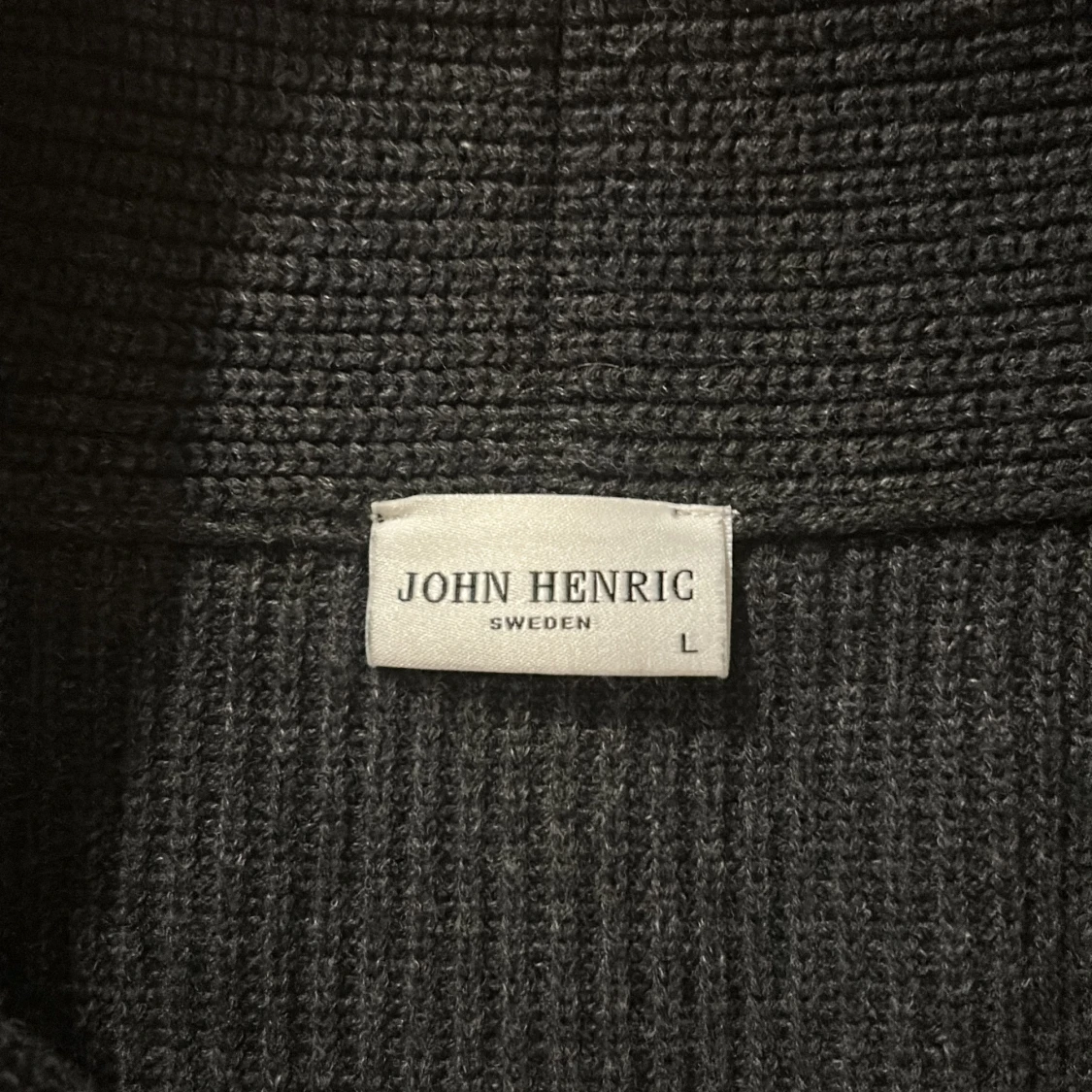 Säljer en svart stickad kofta från John Henric i storlek L. Koftan har ribbad struktur, knäppning framtill med fem knappar och en bred sjalkrage. Perfekt för lager-på-lager och passar till många olika stilar.