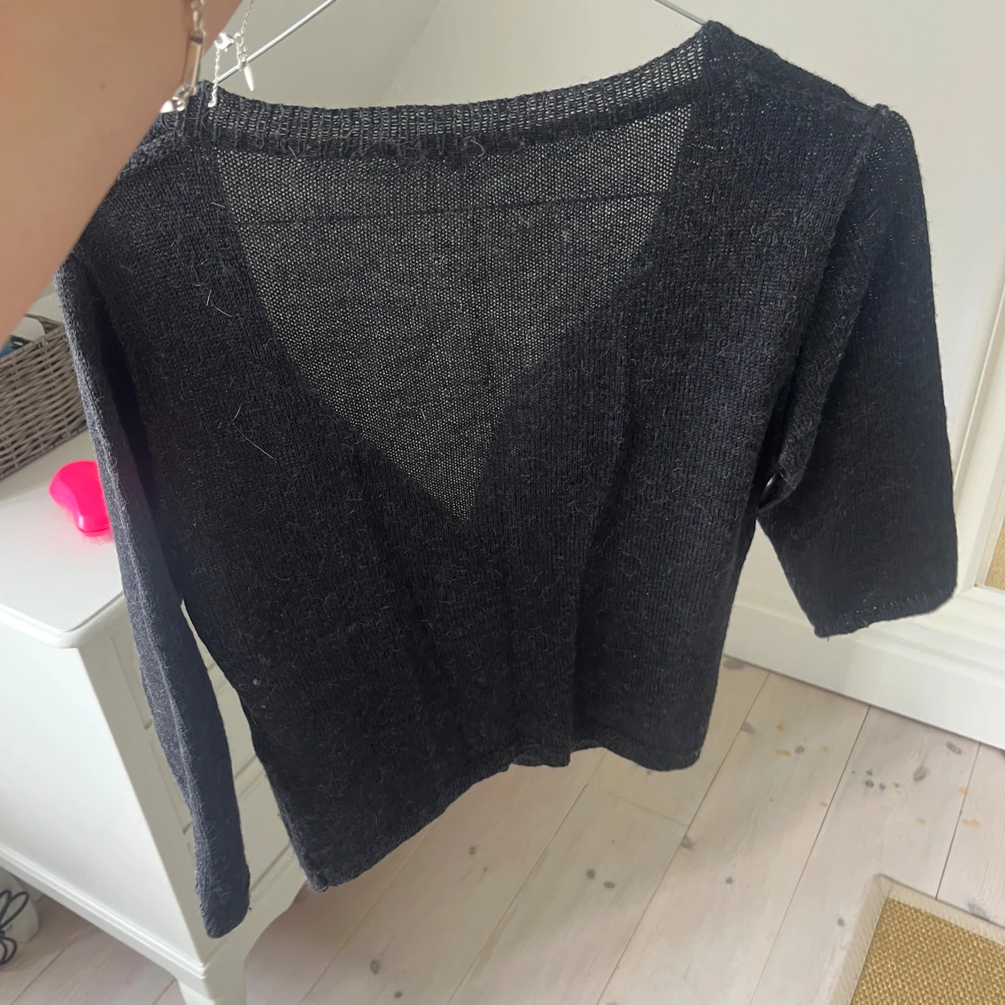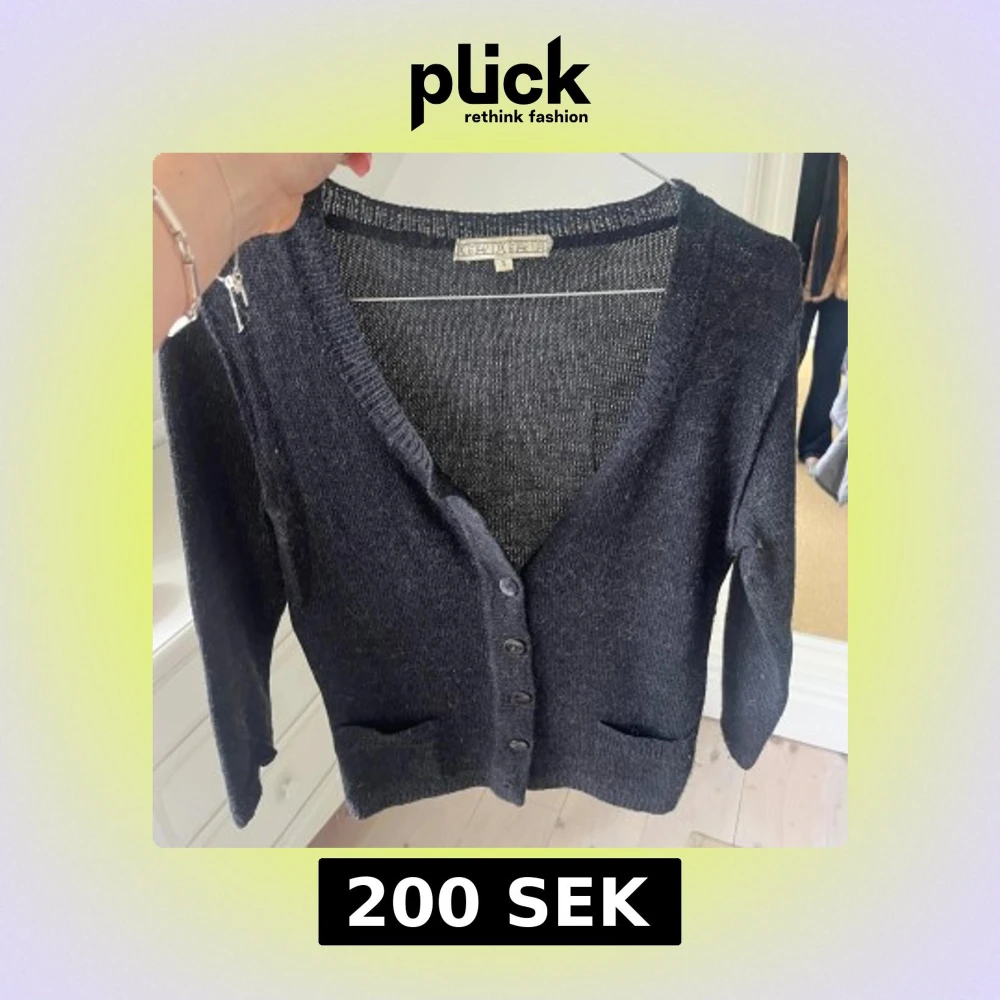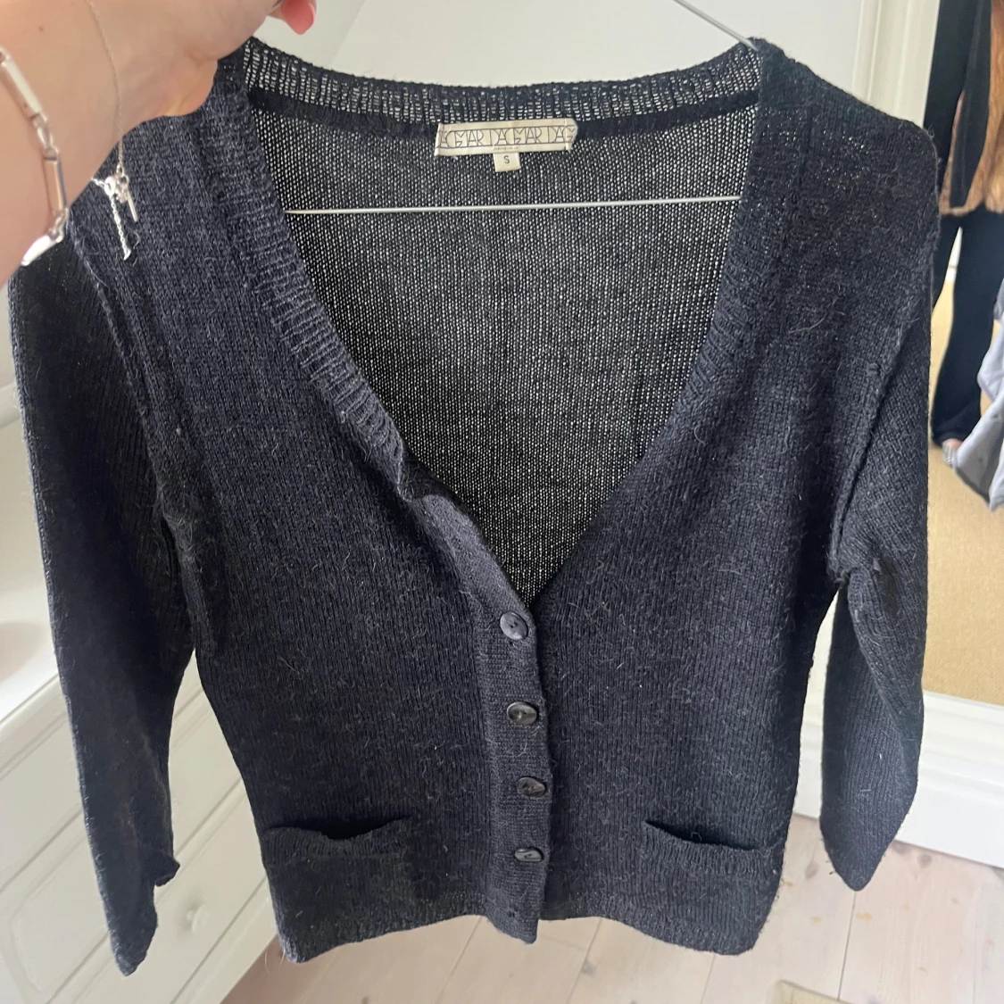 Svart stickad kofta från KappAhl i storlek S. Koftan har v-ringad hals, knappar framtill och två små fickor. Materialet är mjukt och lätt, perfekt för lager-på-lager. Långärmad och enkel att matcha med olika outfits.