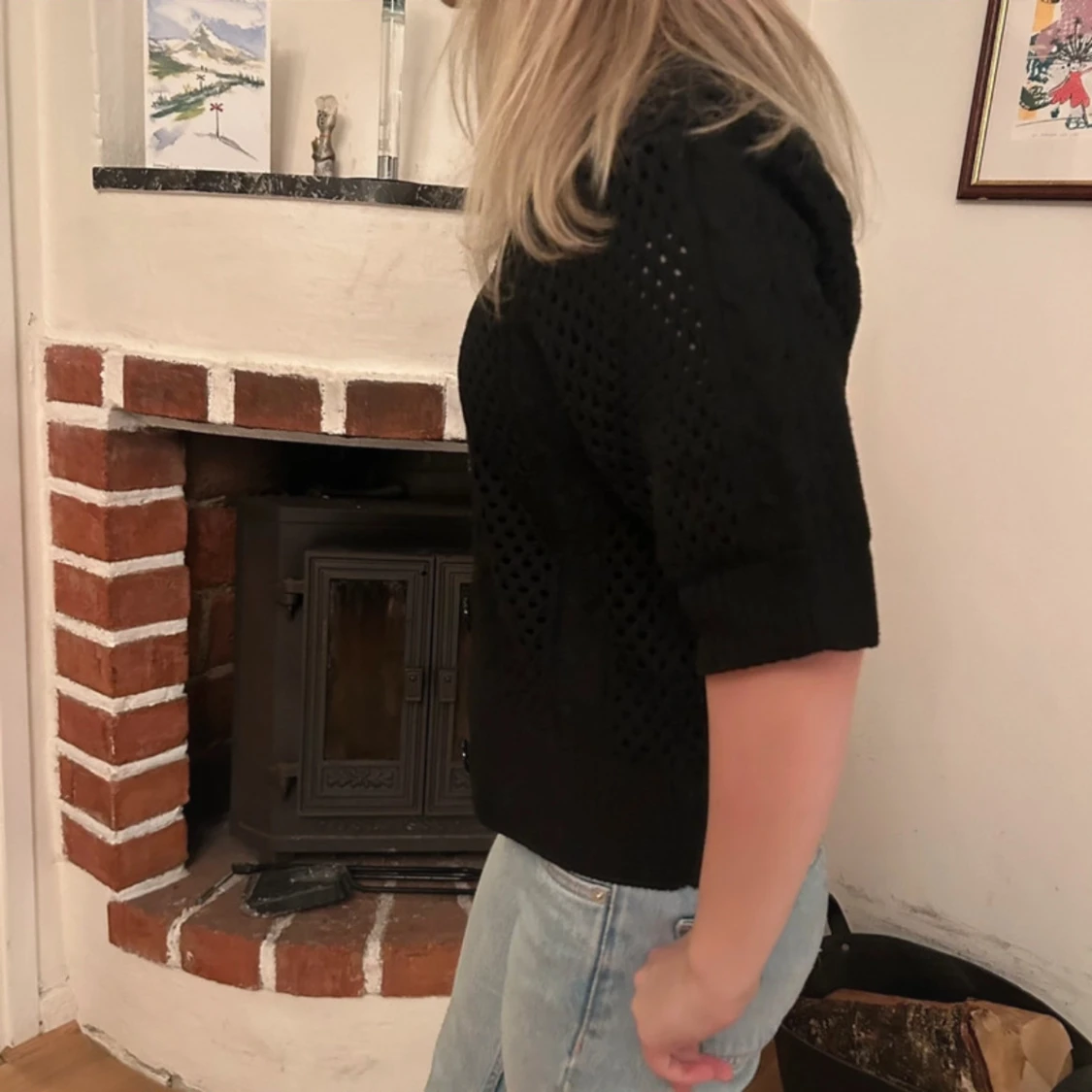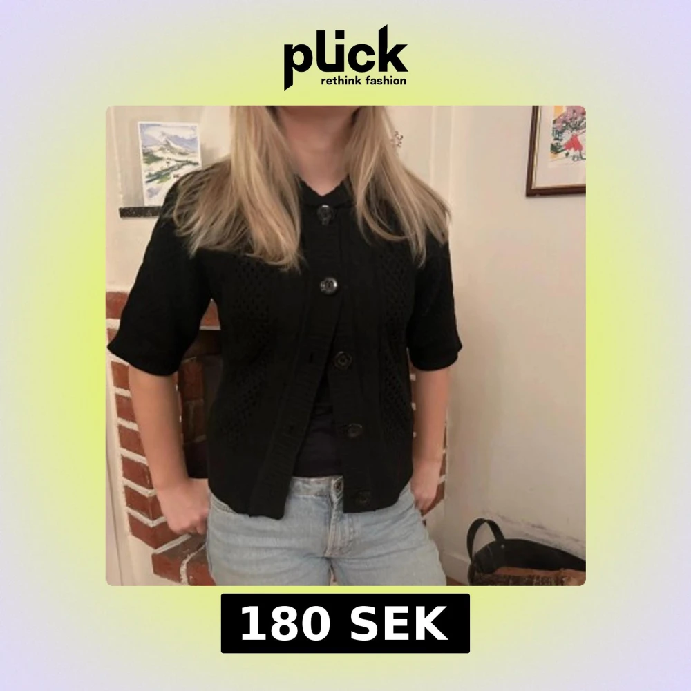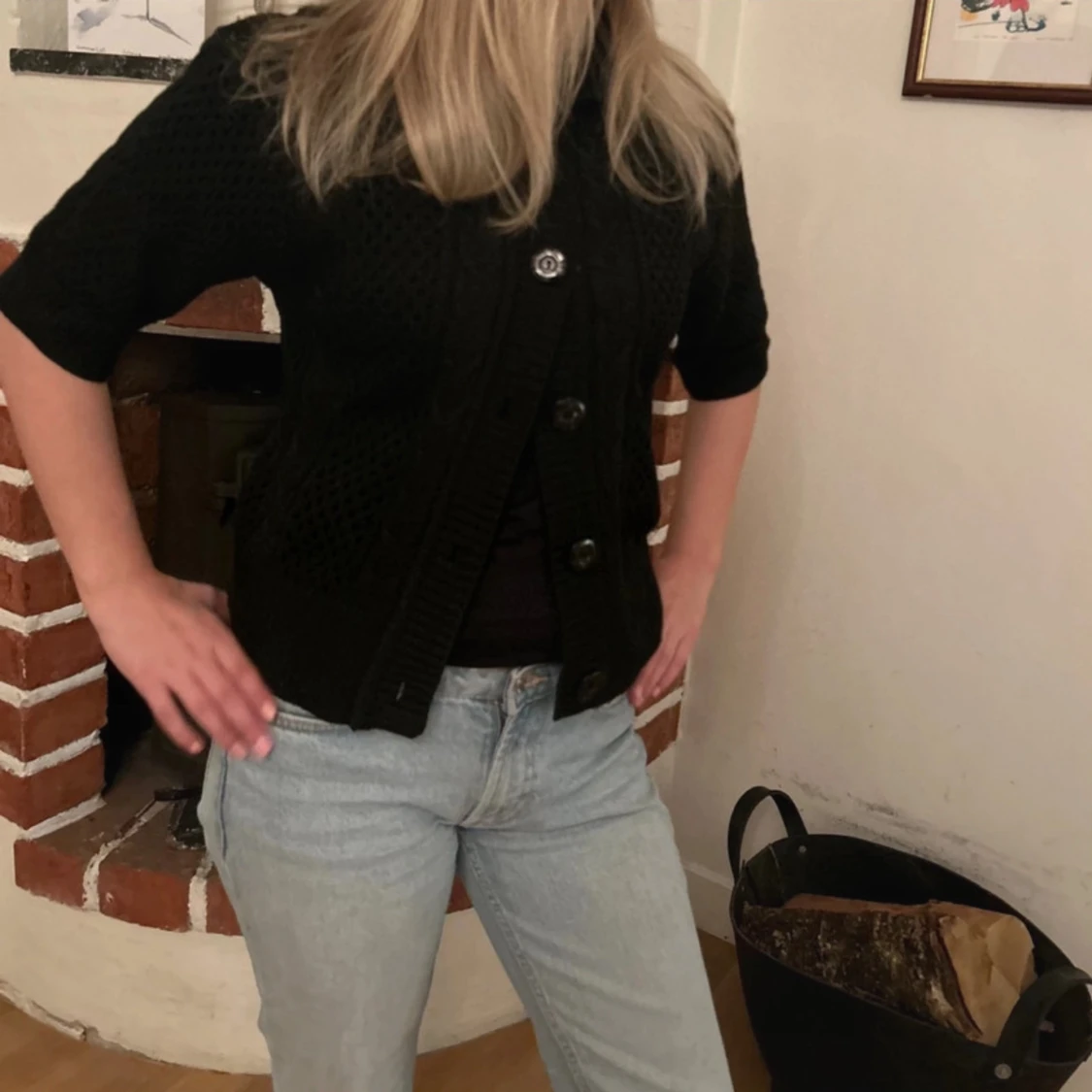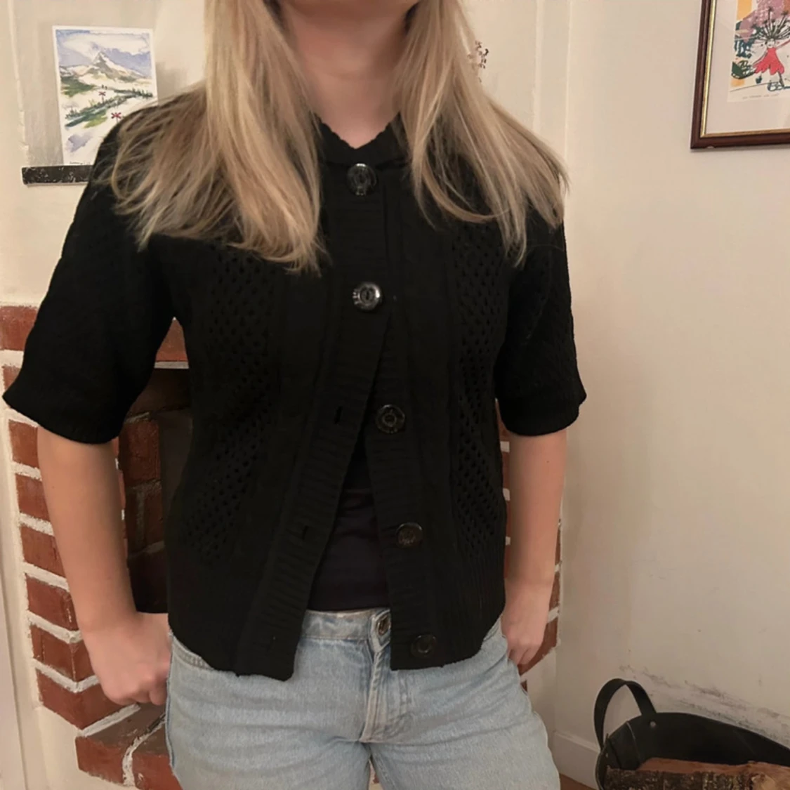 Svart stickad kofta med korta ärmar och knappar framtill🥰köpt second hand