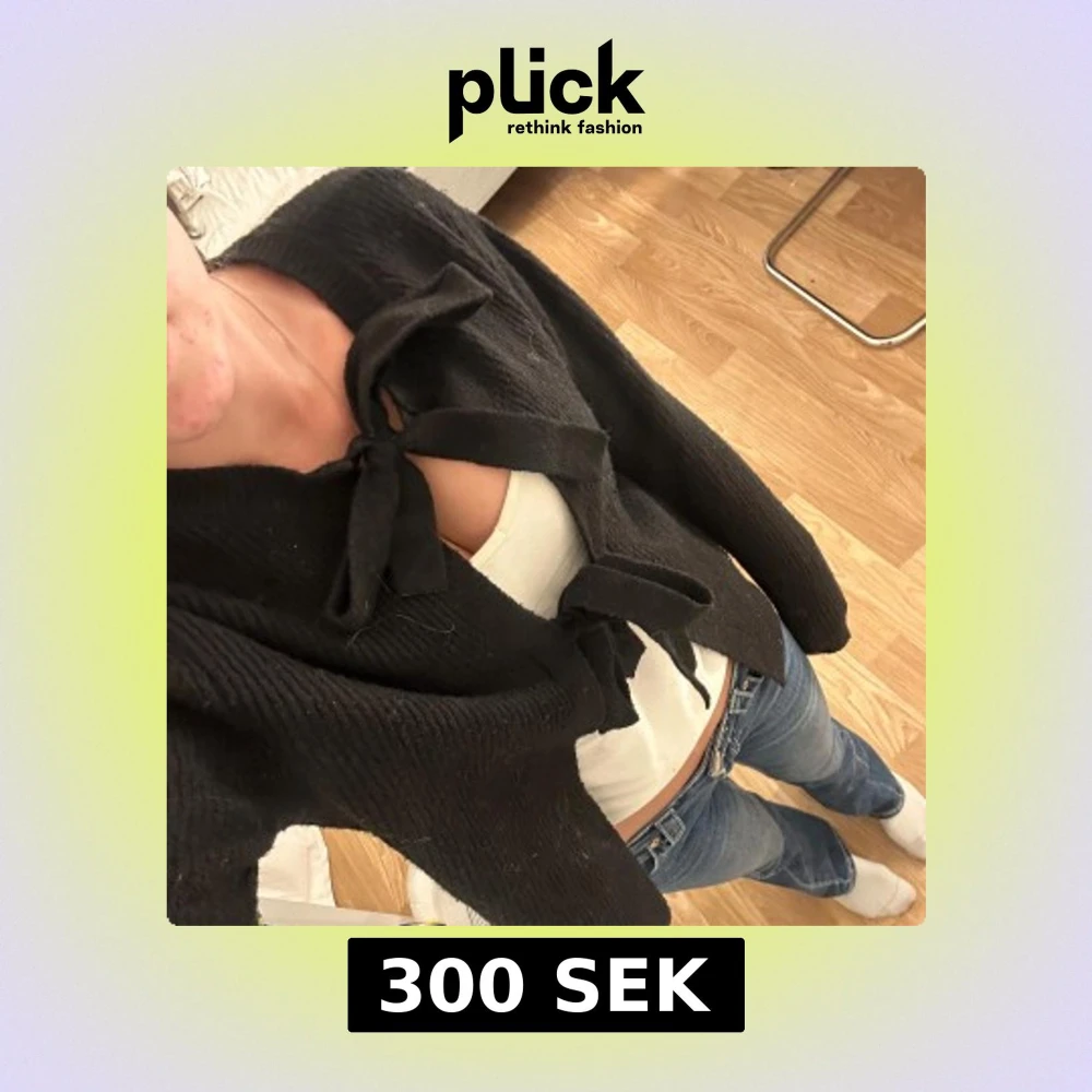 Svart stickad kofta med två stora rosetter framtill som knäppning. Koftan har lång ärm och en klassisk, enkel design. Perfekt att slänga över en topp för en snygg lager-på-lager-look💞 bara skriva om ni har några funderingar 🤗