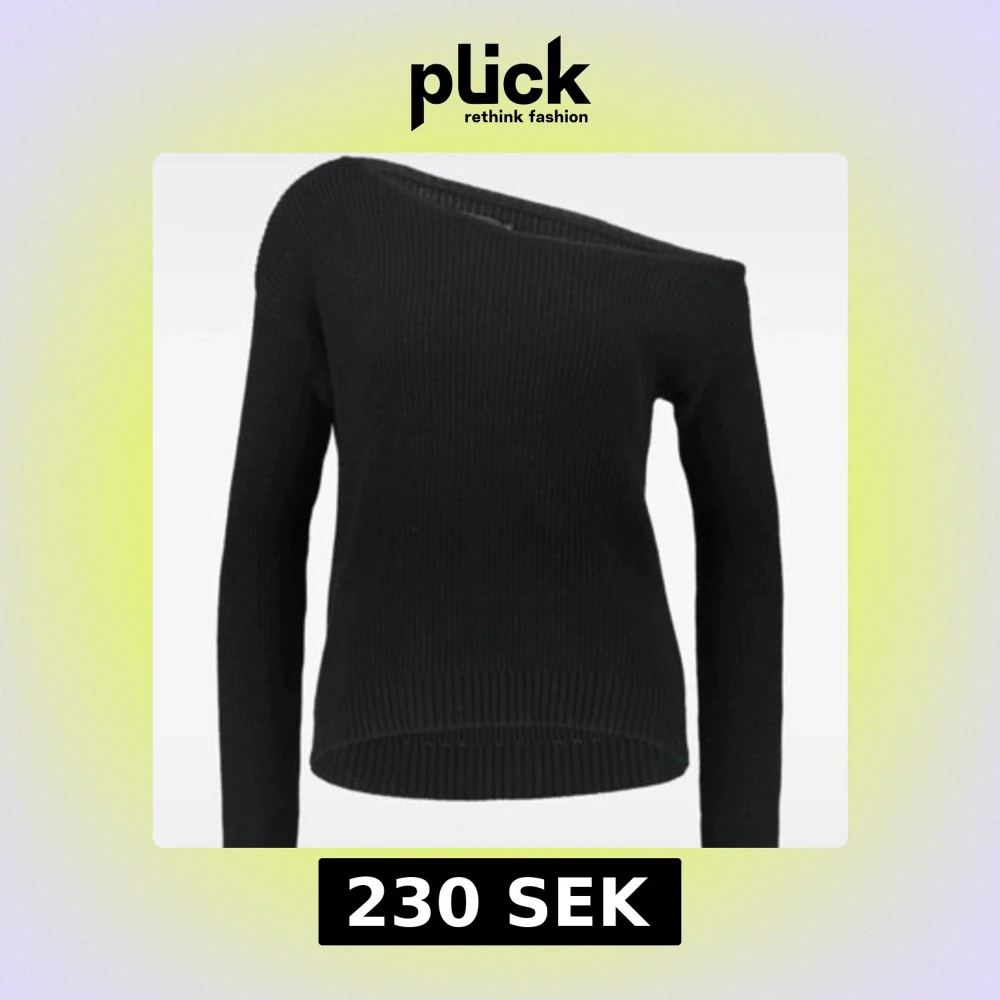 Svart ribbstickad tröja med offshoulder-design och lång ärm. Snygg och enkel modell som sitter lite tightare och har en klassisk rundad nederkant. Perfekt till jeans eller kjol för en stilren look.