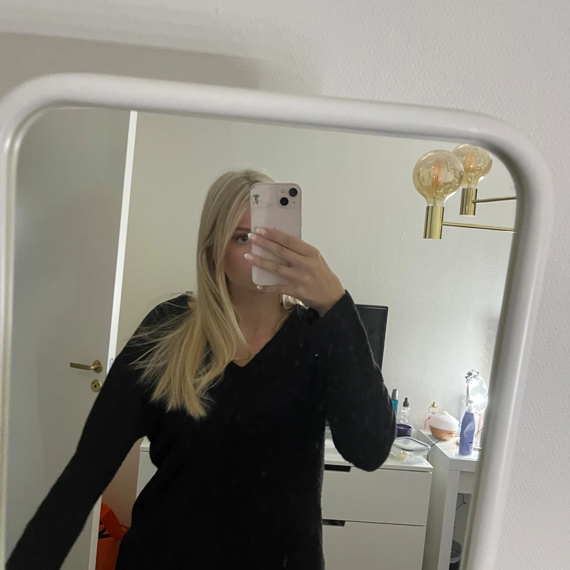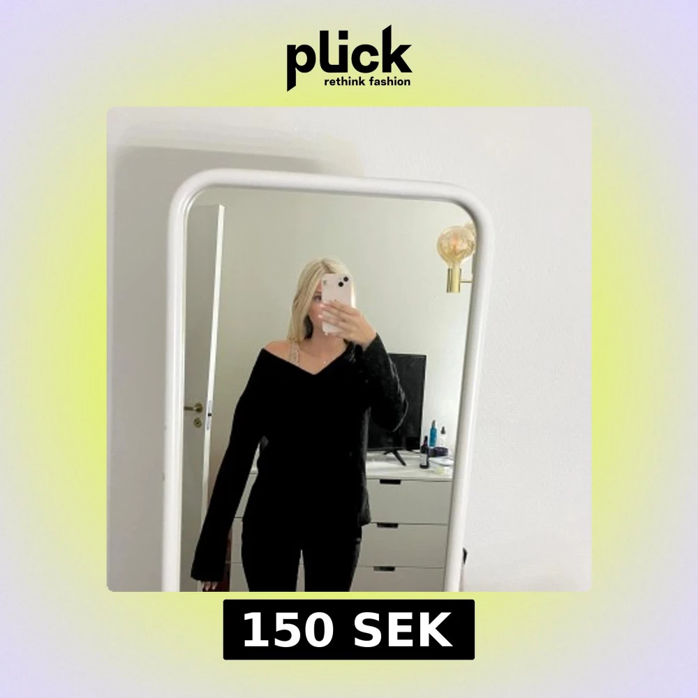 Säljer en svart stickad tröja med offshoulder-design och långa ärmar. Tröjan har en avslappnad passform och är perfekt för dig som gillar en enkel men snygg stil. Passar till både jeans och kjol för en chill look.