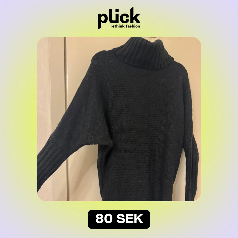 Säljer en svart stickad polotröja med en snygg öppen ryggdetalj. Tröjan har långa ärmar och en mysig polokrage, perfekt för kyliga dagar. Den är både stilren och bekväm, idealisk för höst och vinter. Passar bra till både jeans och kjol!