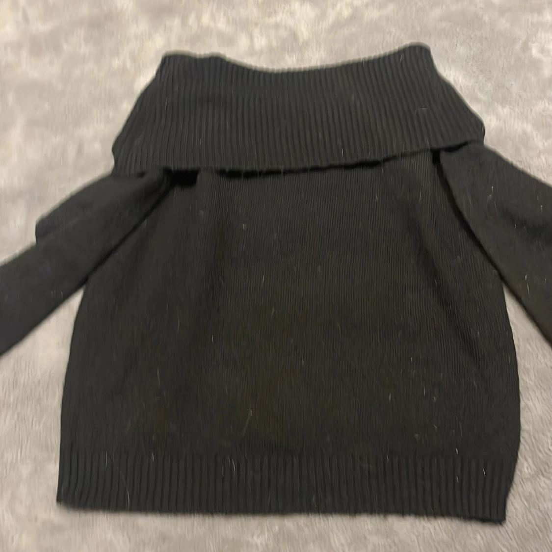 Snygg svart stickad tröja utan axlar. Perfekt för en stilren look.