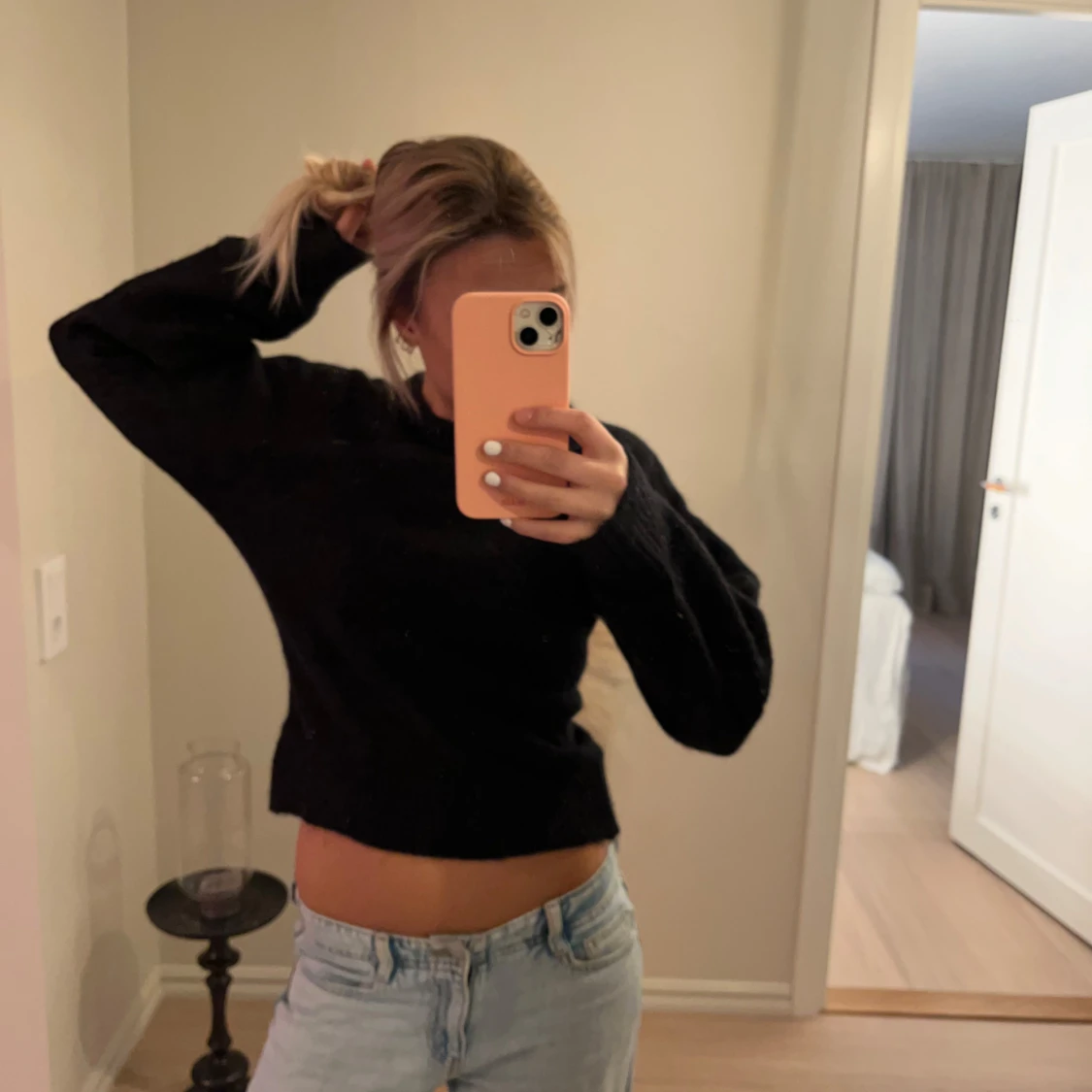 Svart figursydd stickad tröja från bikbok. Är i super skick, skriv om ni har frågor💞