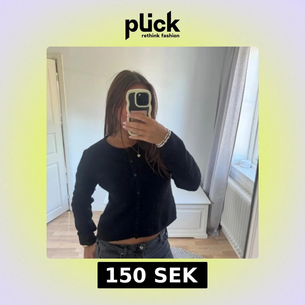 Svart stickad kofta med rund halsringning och knäppning framtill. Långärmad och lite loose fit, perfekt att slänga över ett linne eller t-shirt. Enkel och stilren design som funkar till det mesta.