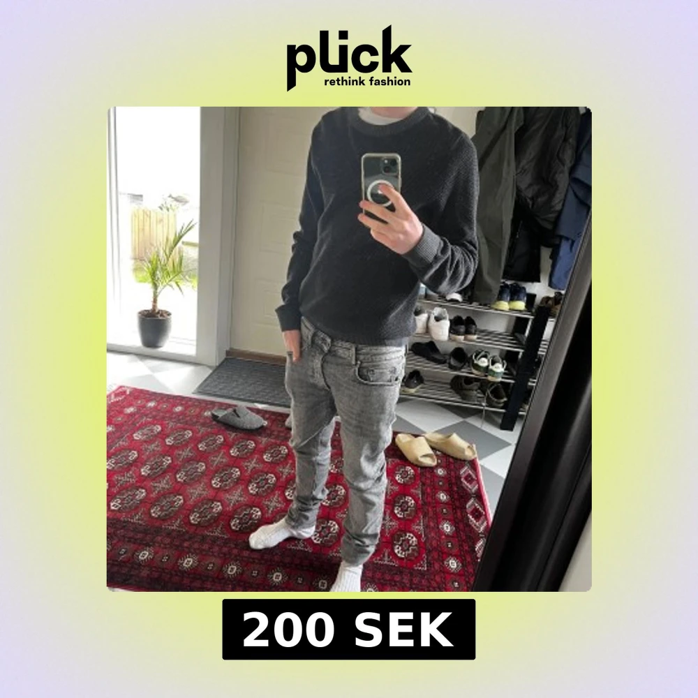 Säljer en stilren svart stickad tröja med rund hals och långa ärmar. Perfekt för kyligare dagar och passar till det mesta i garderoben.