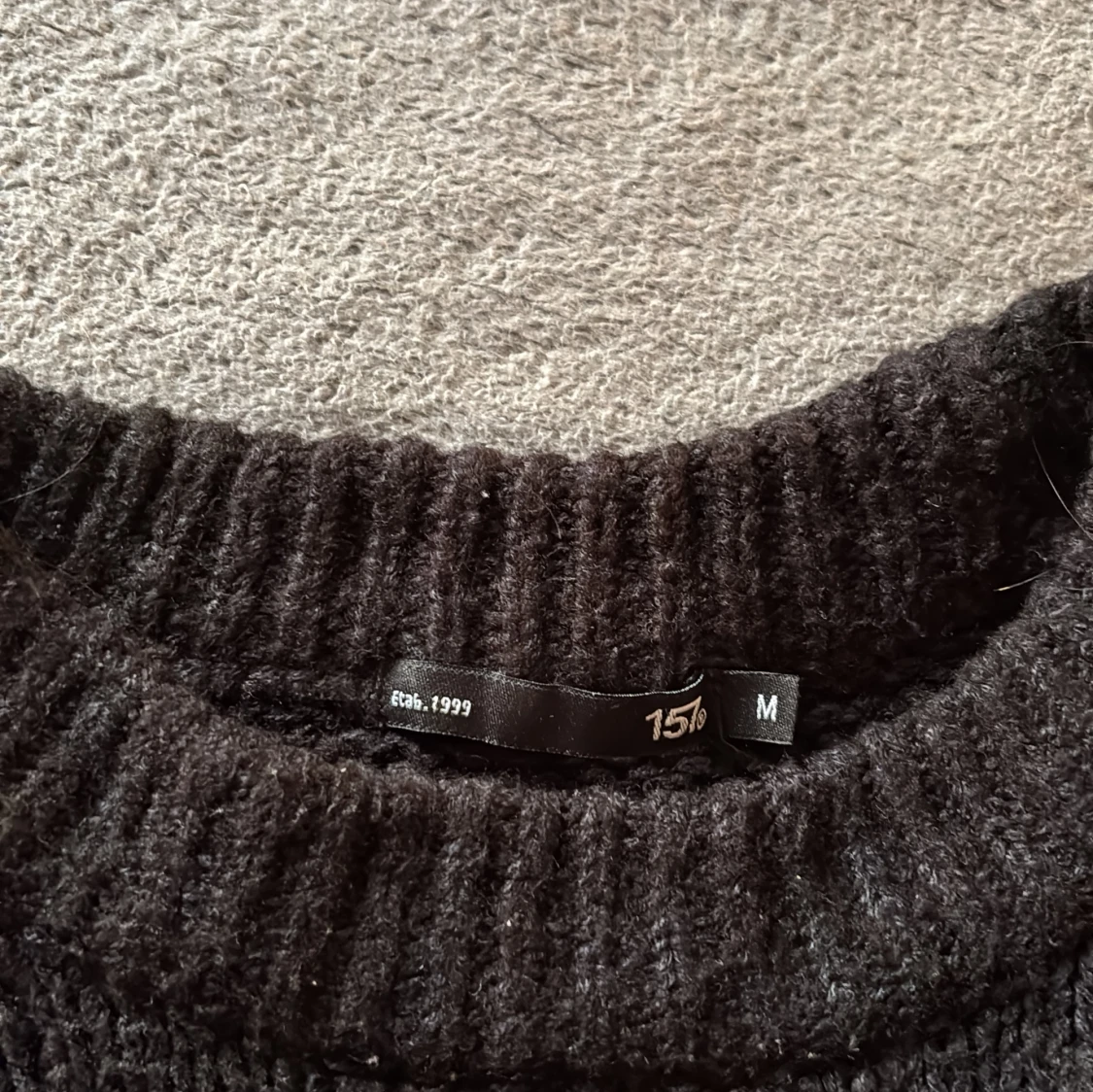 Mysig svart stickad tröja från lager 157 med ribbad hals, ärmslut och nederkant. Tröjan har en klassisk rak passform och långärmade ärmar, perfekt för kyliga dagar. Enkel och stilren design som funkar till det mesta. Säljer pga fel storlek. Pris kan diskuteras. Skriv för fler bilder.