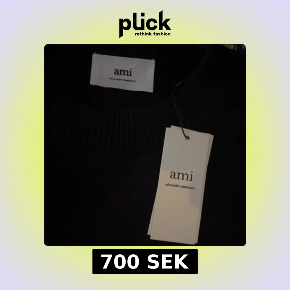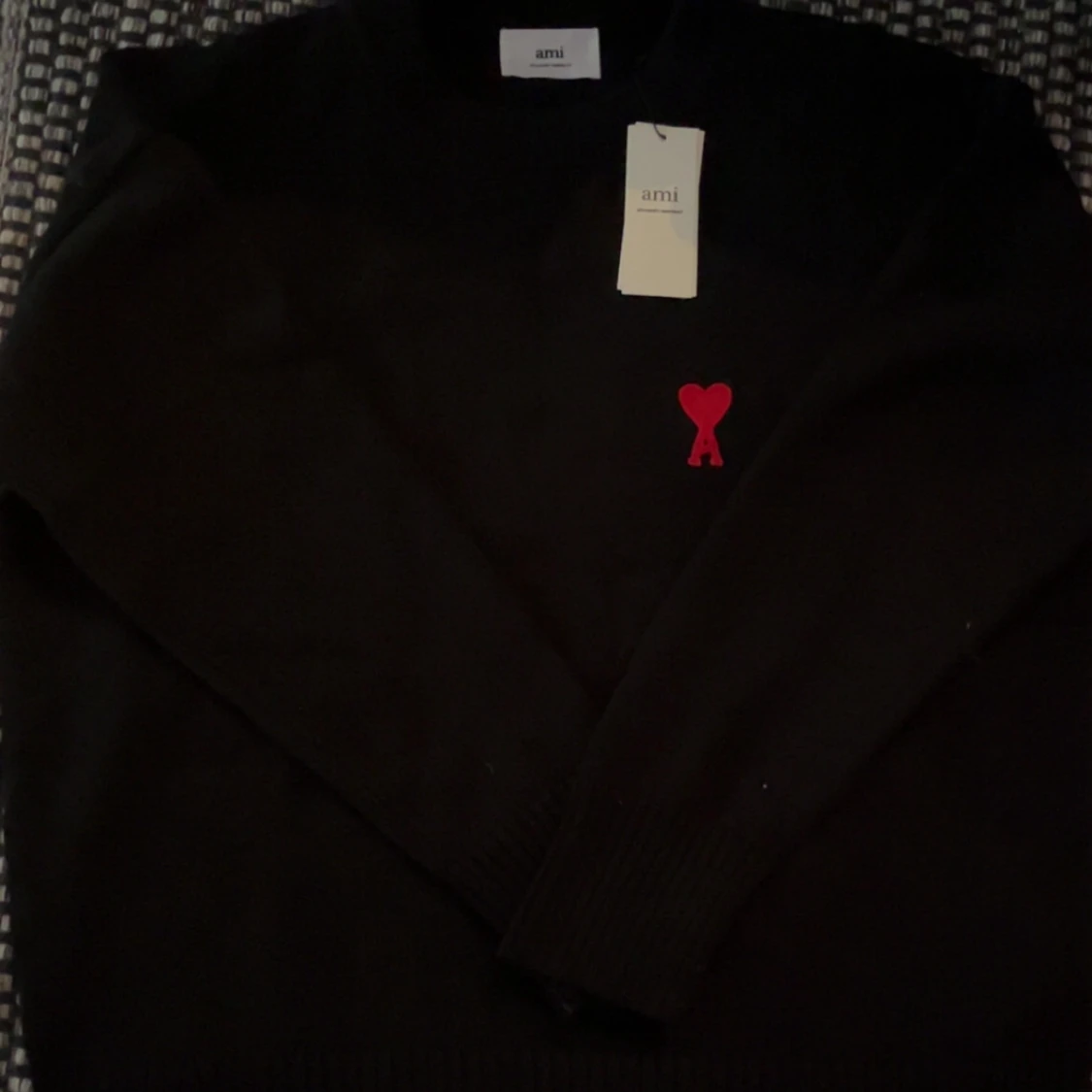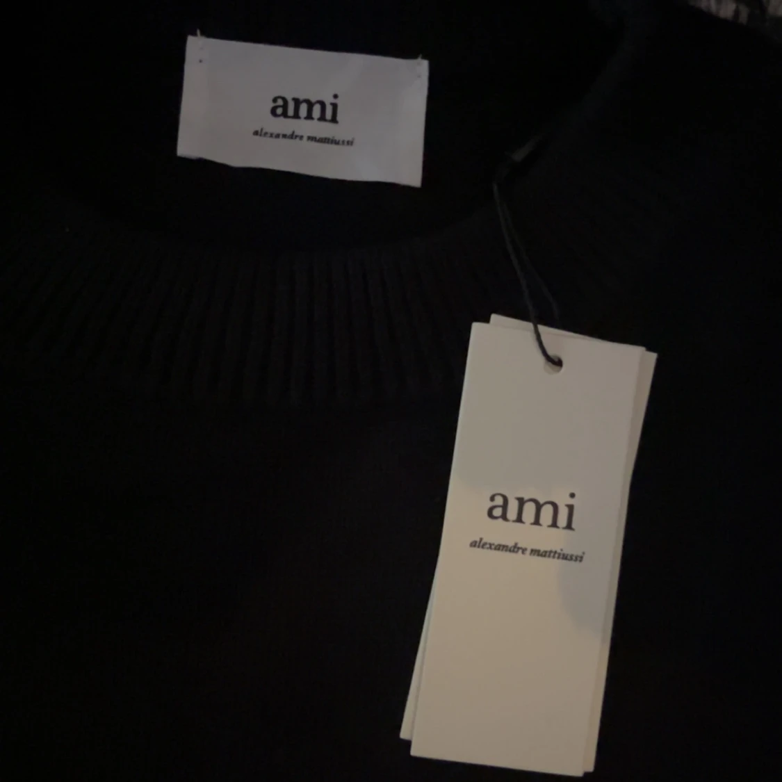 Svart stickad tröja från Ami Alexandre Mattiussi med klassisk rund hals och ribbade muddar. På bröstet finns Ami:s ikoniska röda hjärta med bokstaven A broderad. Perfekt för dig som gillar stilrena och snygga detaljer.